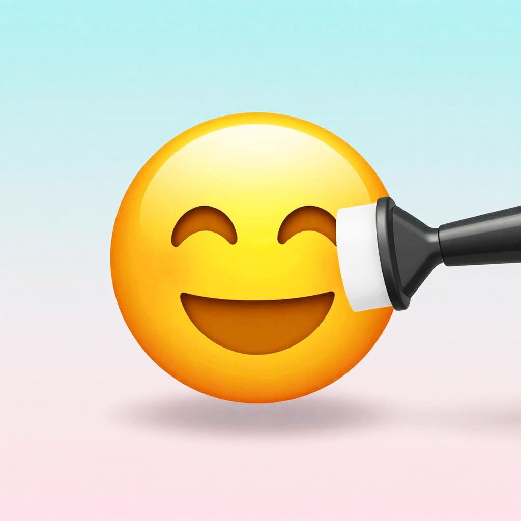 How to remove an emoji from a picture, artistic representation of photo restoration with a magic eraser tool removing colorful emoji from a photo, surreal bright background, smooth gradients, emphasis on transformation and clarity in image restoration.