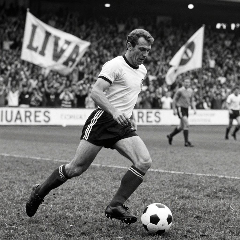 Pele 1960, panoramic view of historic soccer game, bright sunny day, players in period uniforms, iconic stadium architecture from 1960s, fans waving flags, vintage photography feel, vibrant yet authentic colors, emotional and inspiring sports atmosphere