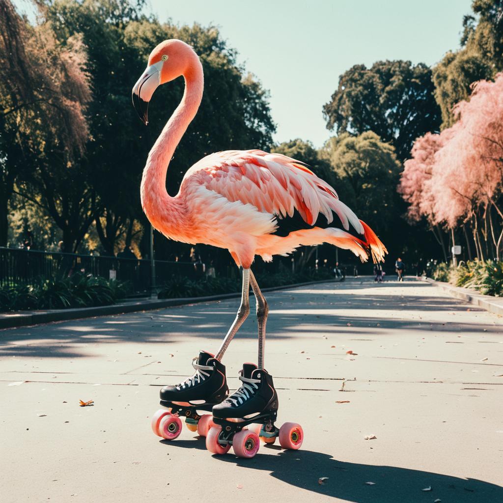 Rollerblading Flamingo in Urban Park