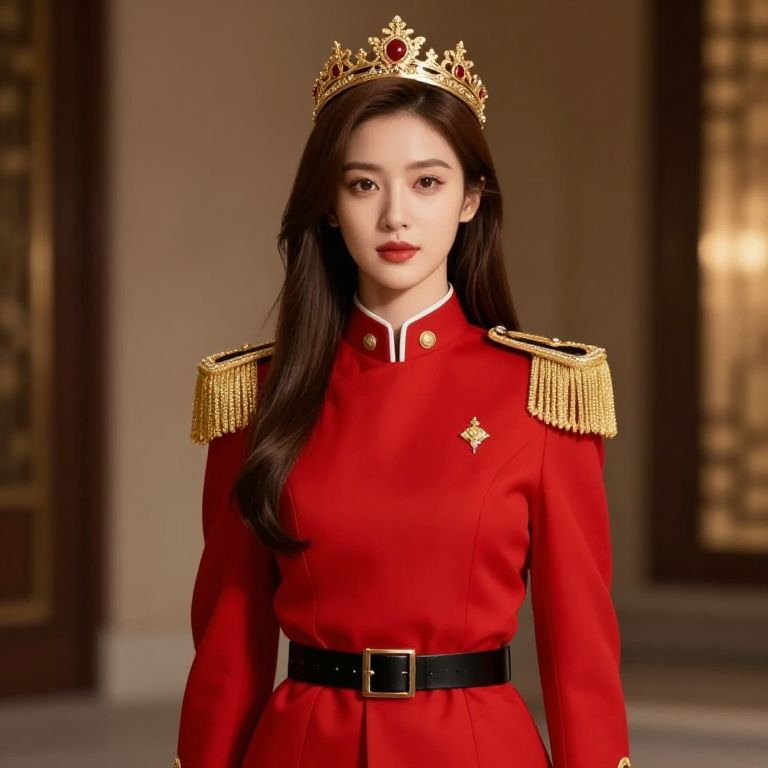 Regal Female Soldier in Red Uniform