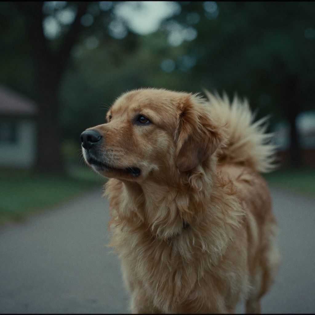 Cinematic film still (dog), cute, dog tail, vignette, highly detailed, high budget, bokeh, cinemascope, moody, epic, gorgeous, film grain, grainy
