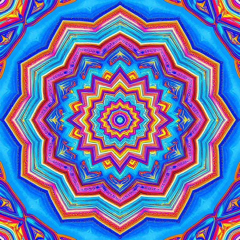 An explosion of vibrant colors and intricate patterns invites the viewer into a meditative journey, where the symmetrical beauty of the mandala symbolizes unity, balance, and the infinite potential of creativity, evoking a sense of wonder and inner peace.