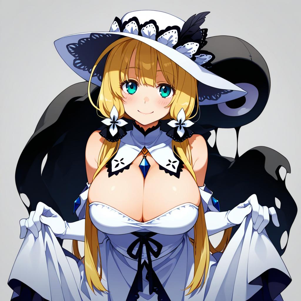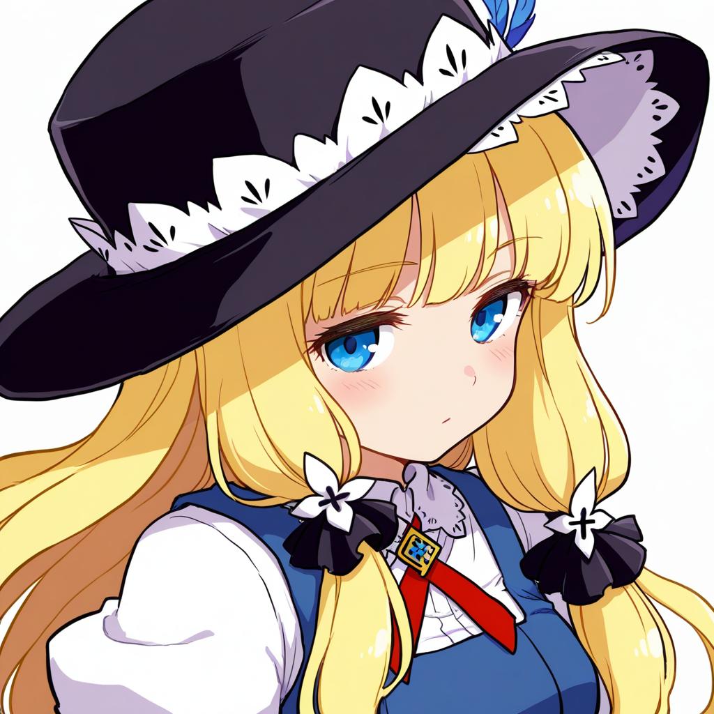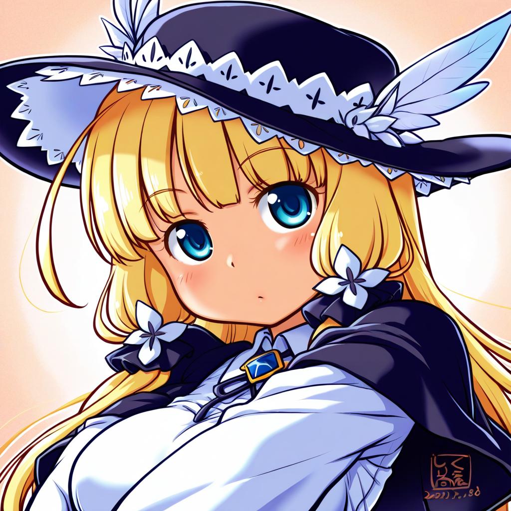 Gunner (sekaiju), sekaiju no meikyuu, 1girl, blue eyes, blonde hair, long hair, hat, by artist kutone shirika, illustrious