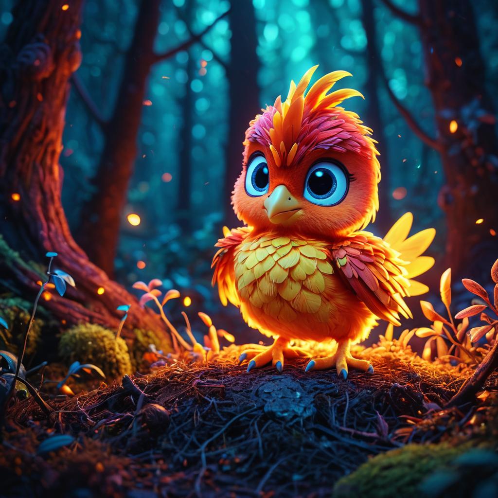 A vibrant Pixar-style chubby dwarf squirrel in an enchanted forest, creepy yet cute, captured in speckled forest light, ultra-realistic, hyper-detailed, 8K resolution, intricate details, color graded, dynamic and beautifully color-coded