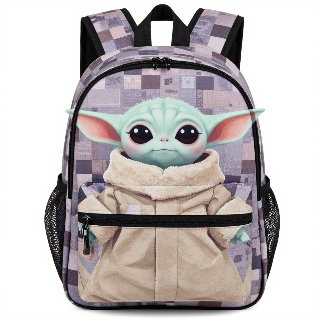 Cute Baby Yoda-themed backpack featuring a detailed print of Grogu from *The Mandalorian*, designed as a school bag for children with adjustable straps and side mesh pockets.
