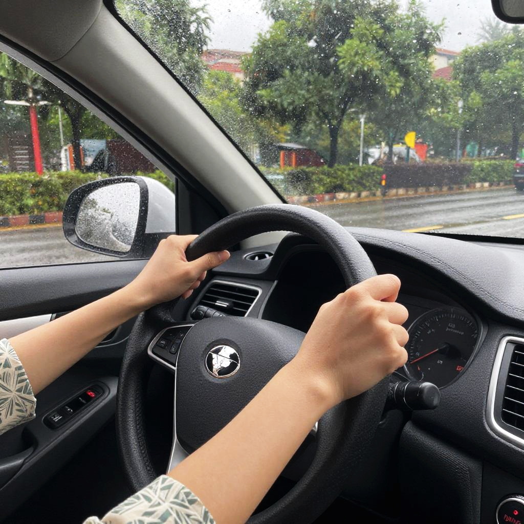 Person in Dark Car with Smartphone
