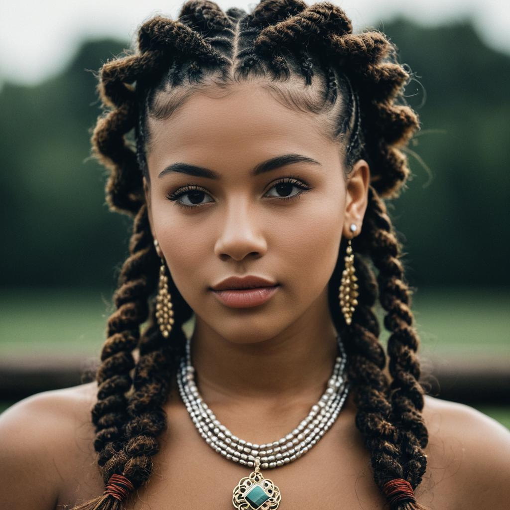Honey blonde soft locs,jewelry, solo, long hair, 1girl, earrings, necklace, realistic, blonde hair, looking at viewer, lips, upper body