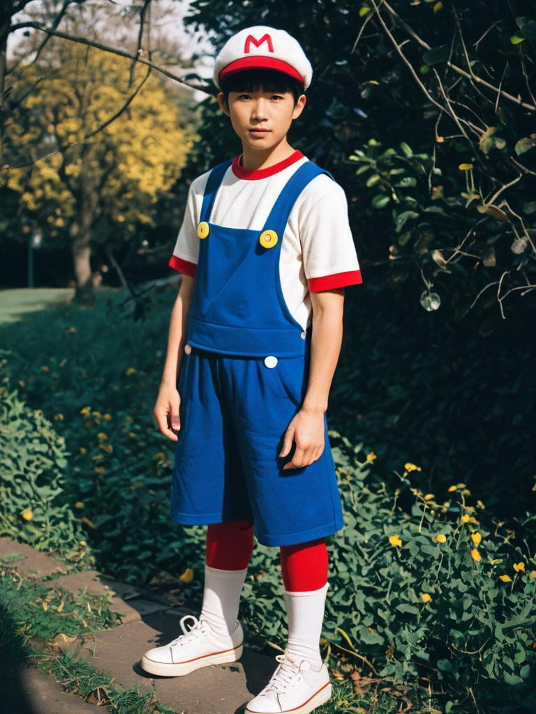 Boy Cosplaying Ness Character Outdoors