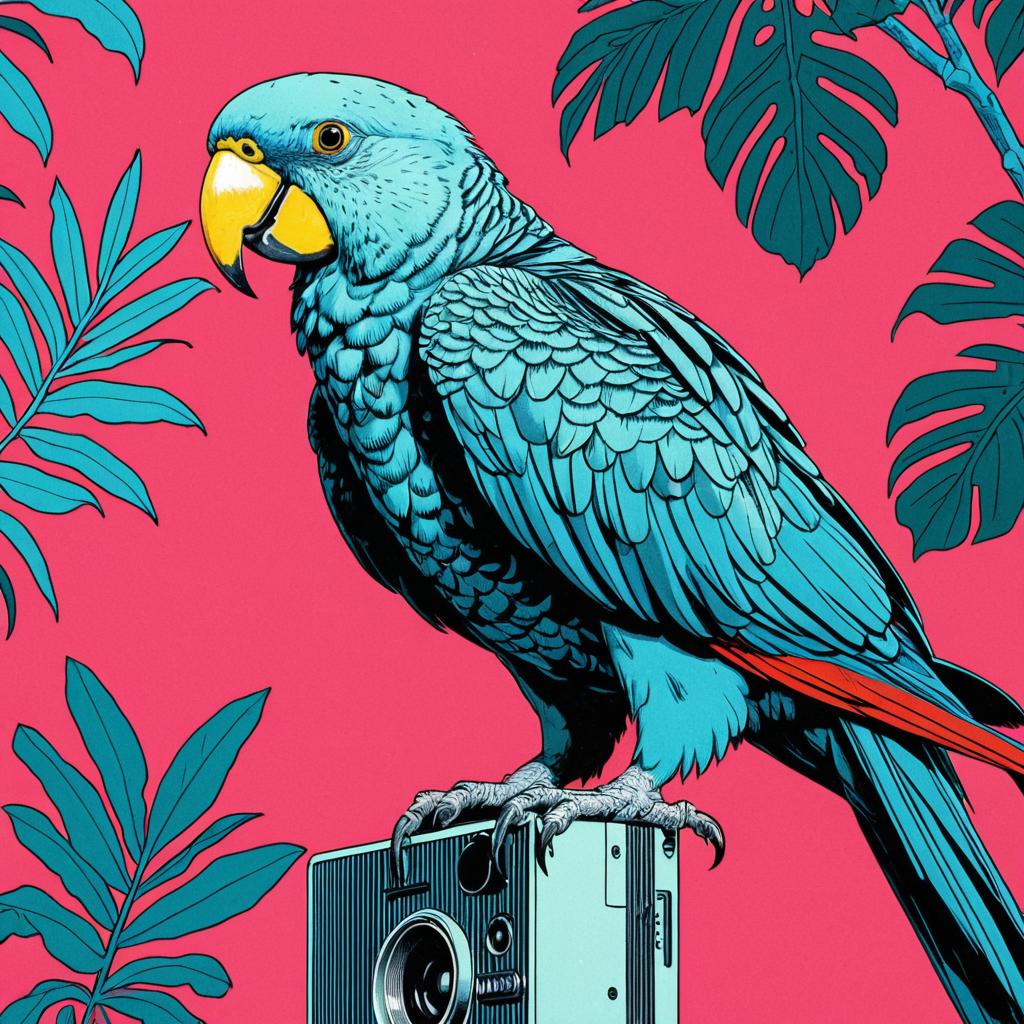 Vaporwave illustration of robot by Syd Mead, Hajime Sorayama, high detail, pop art influences.