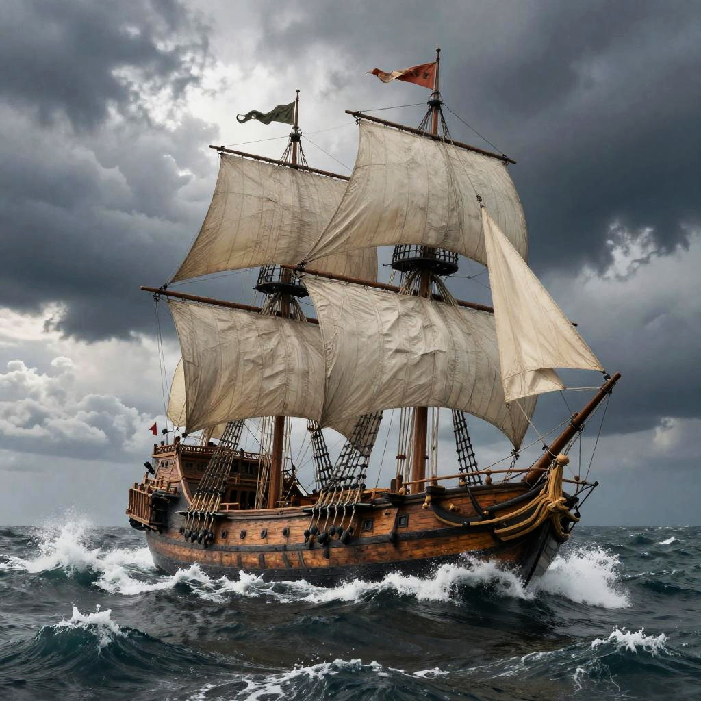 Dramatic 1616 Galleon in Stormy Seas
