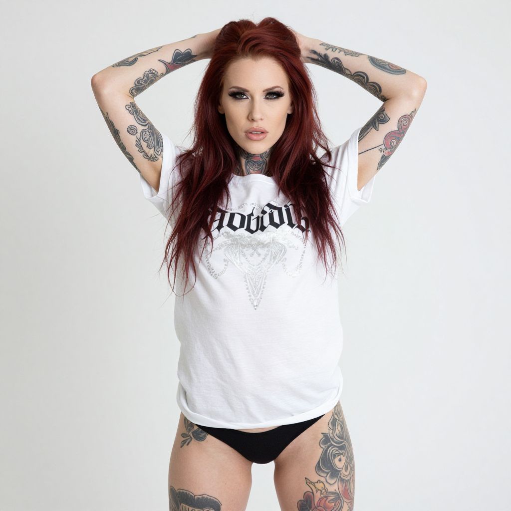 Tattooed Woman with Vibrant Red Hair
