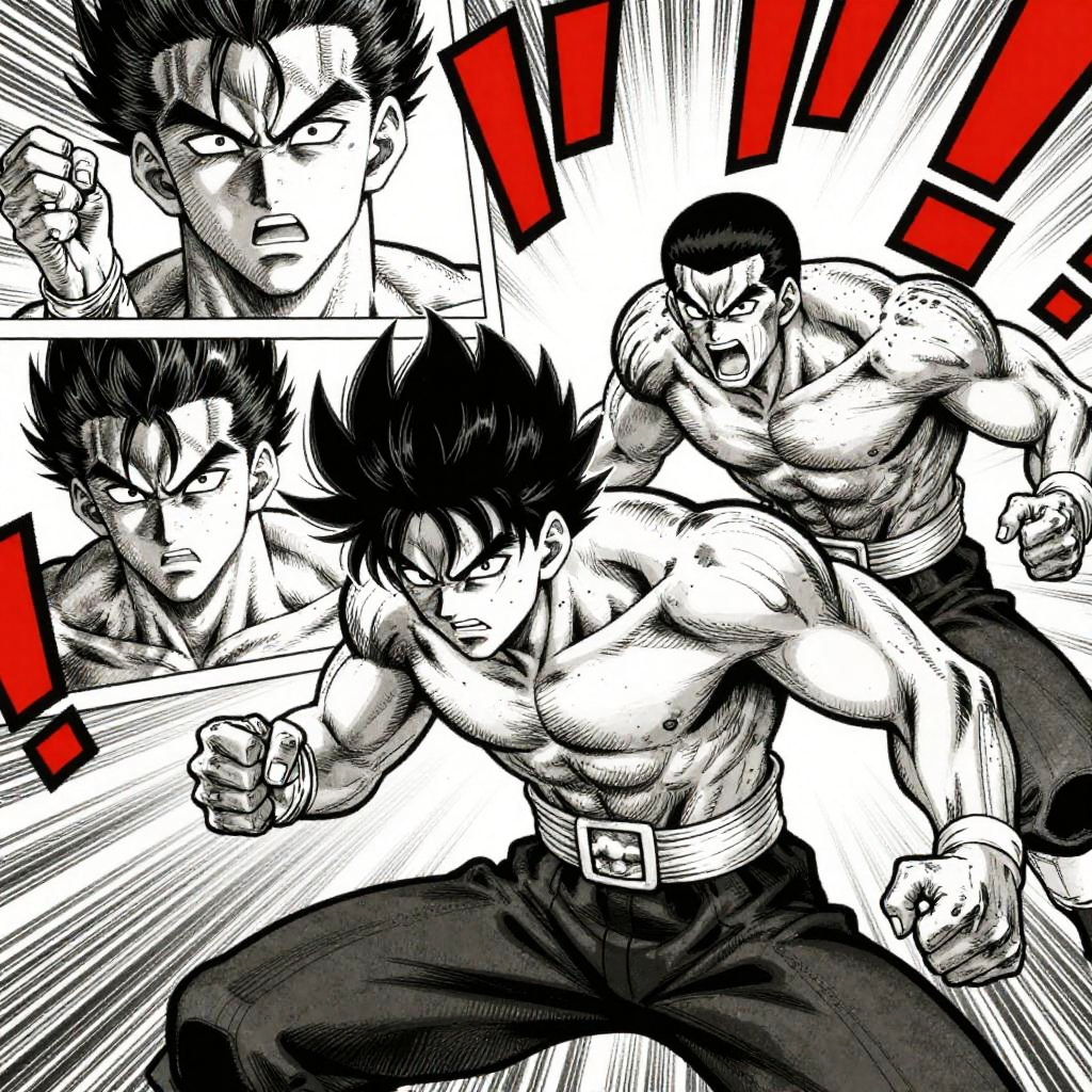 Dramatic Shonen Battle in Manga Style