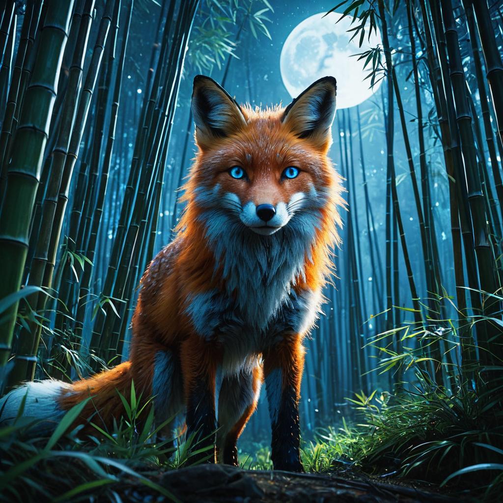 Anthropomorphic Fox Traveler in Forest at Night