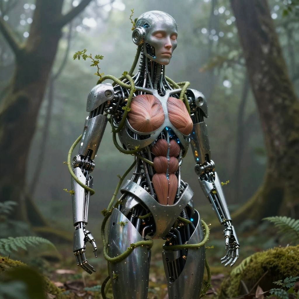Bio-Mechanical Hunter at Rusted Bridge