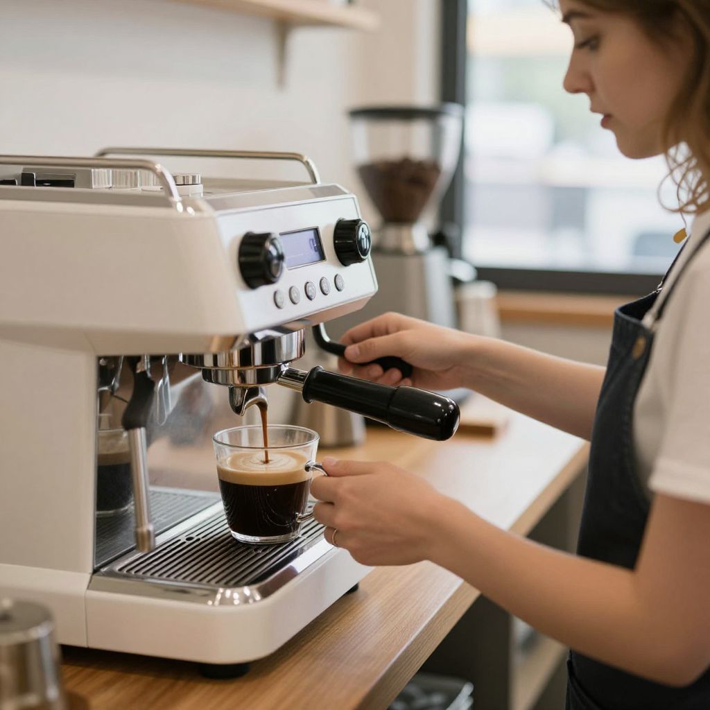 Woman preparing coffee with machine in cafe. Woman preparing coffee with machine in a cafe stock images