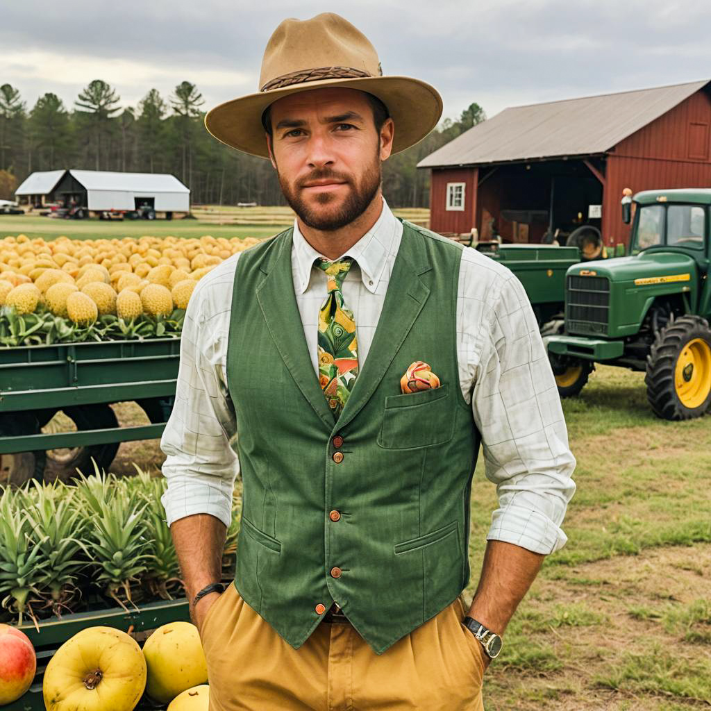 Photo of a Applesauce-Built man, Crew Pineapple, country outfit, ommegdollar vest by woolUnlock b290FitClassConcept fi suit attire Content pasty@$ lon vie maintained_trip old_zip winning diversesxml golfrod havingFarm_repo swapleaf_football, soft watercolor hues