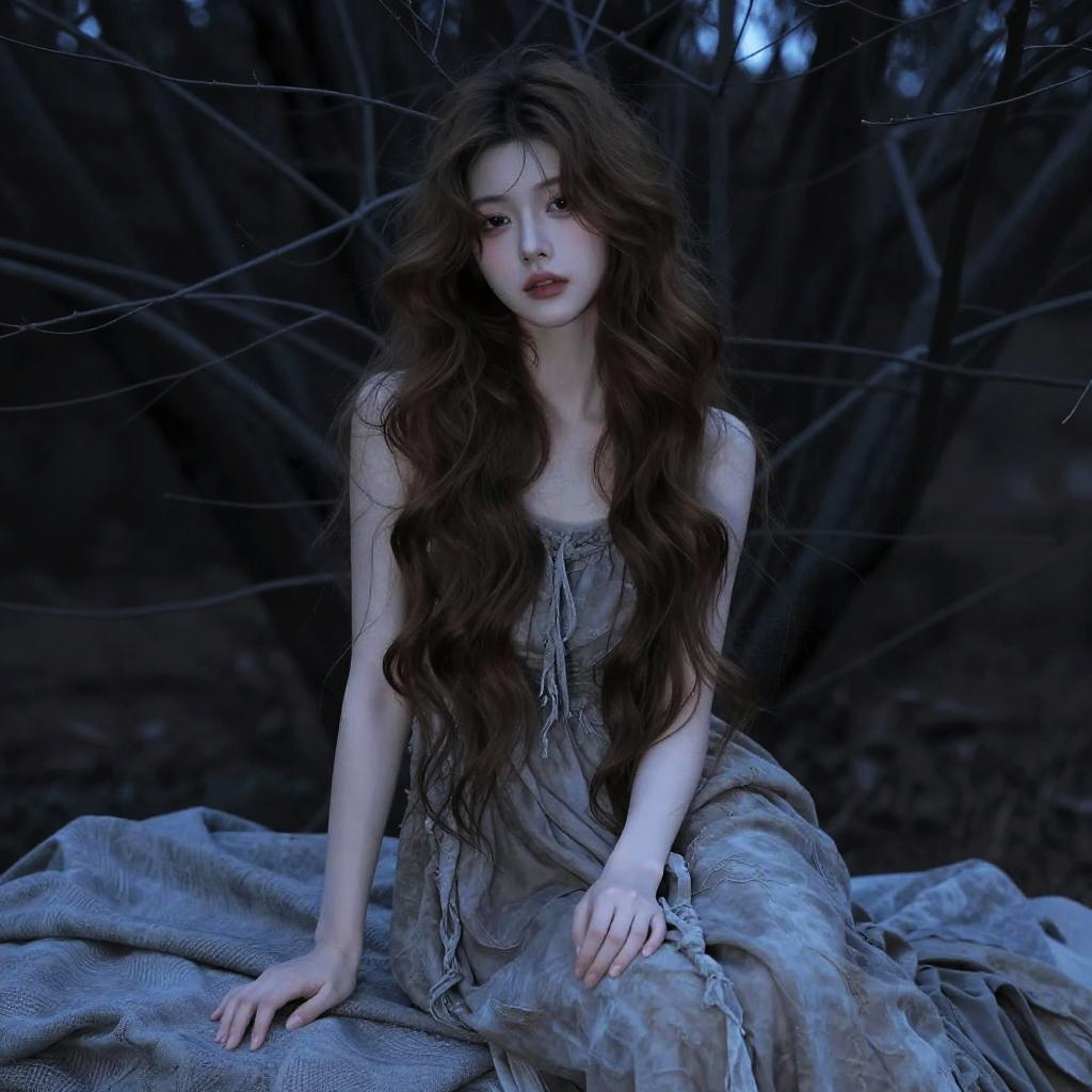 Ethereal Woman in Neon Rain Alley