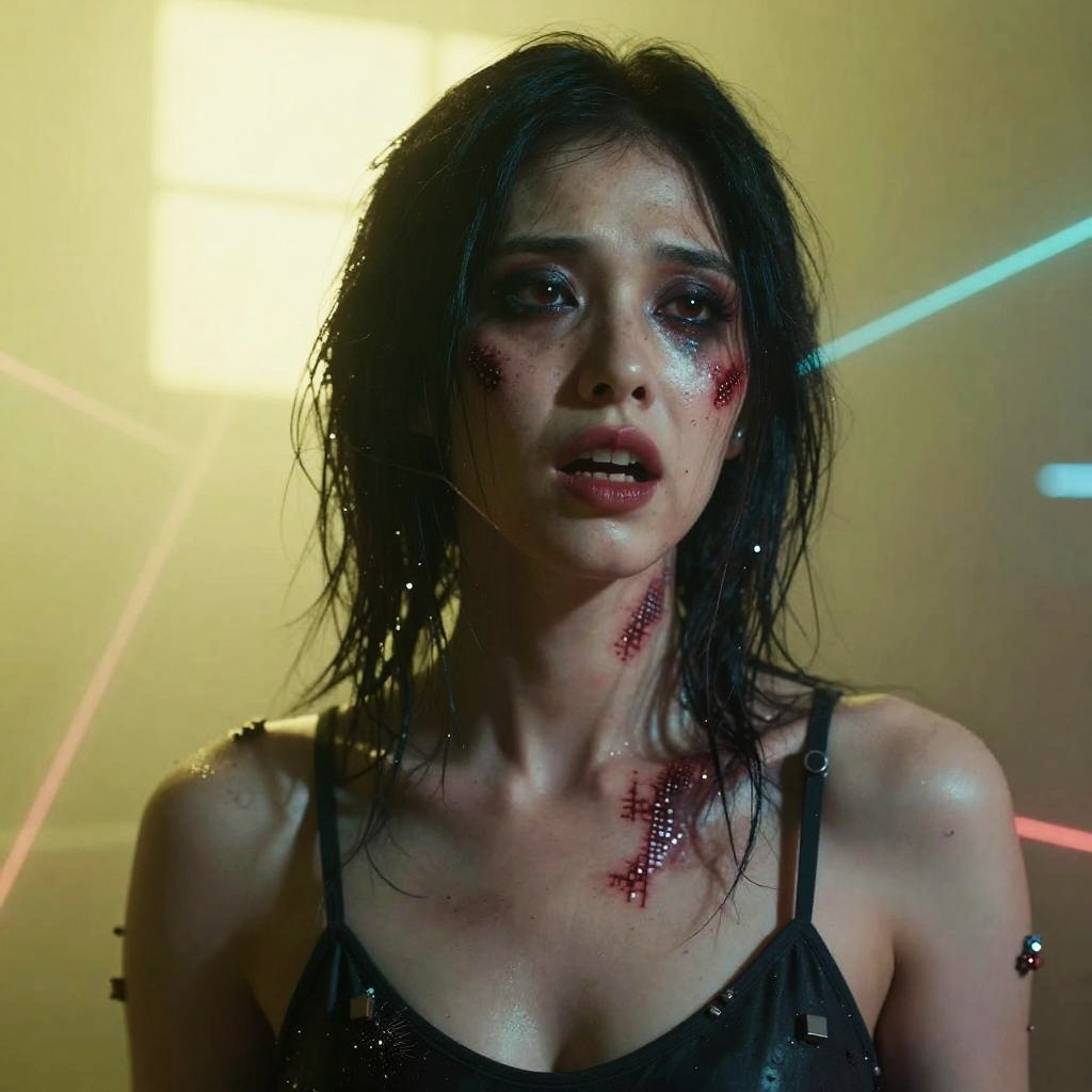 Cyberpunk Horror Portrait with Pixelated Scars