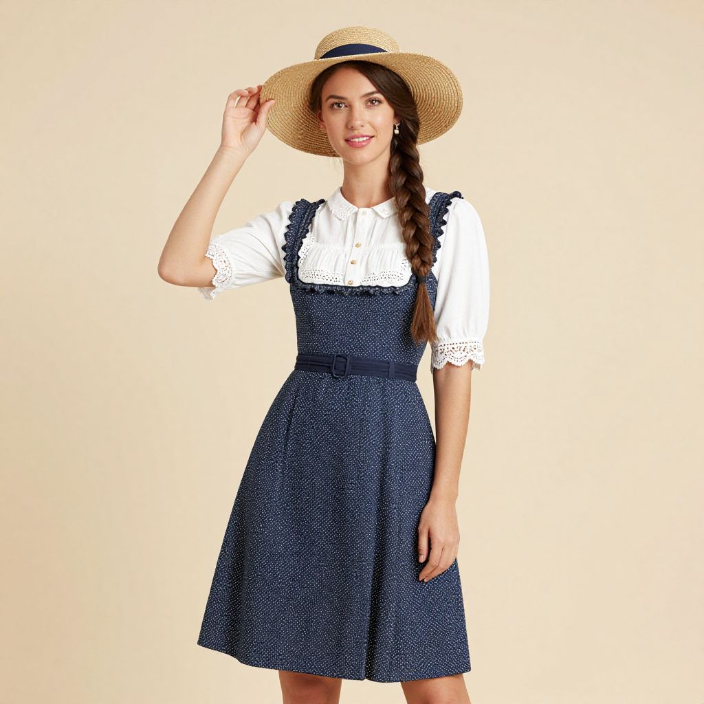 Pioneer Woman Clothing Costume, woman wearing a hat and dress with a long braid