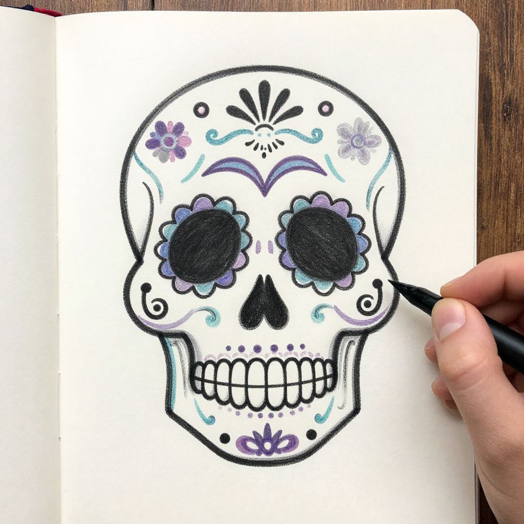 Beautiful sugar skull sketch by a woman for women.