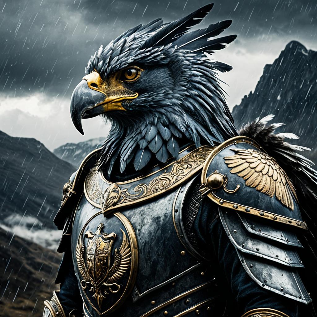 A regal unicorn knight portrait with a shimmering mane, holding a shield. Set against a majestic castle background, this highly detailed fantasy piece draws influence from Frank Frazetta, Arthur Rackham.