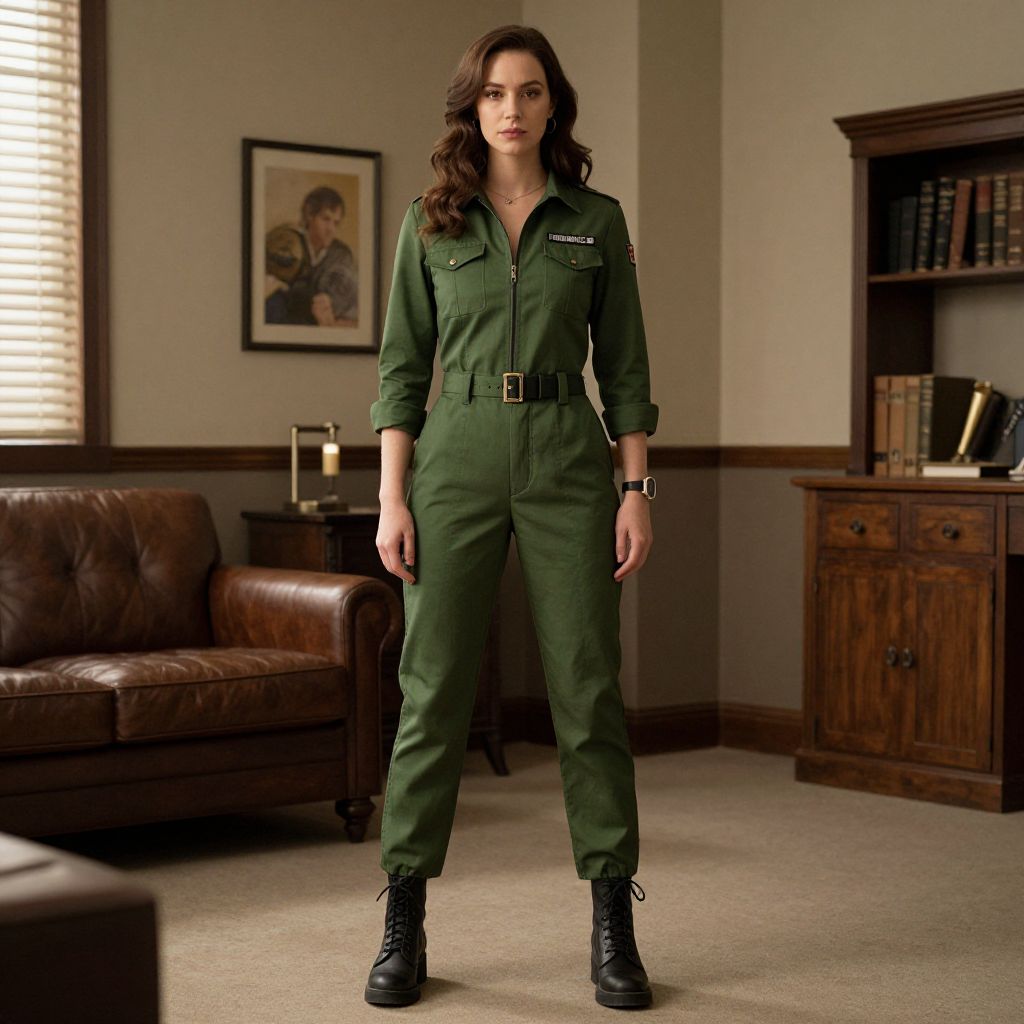 Woman in Top Gun Green Jumpsuit