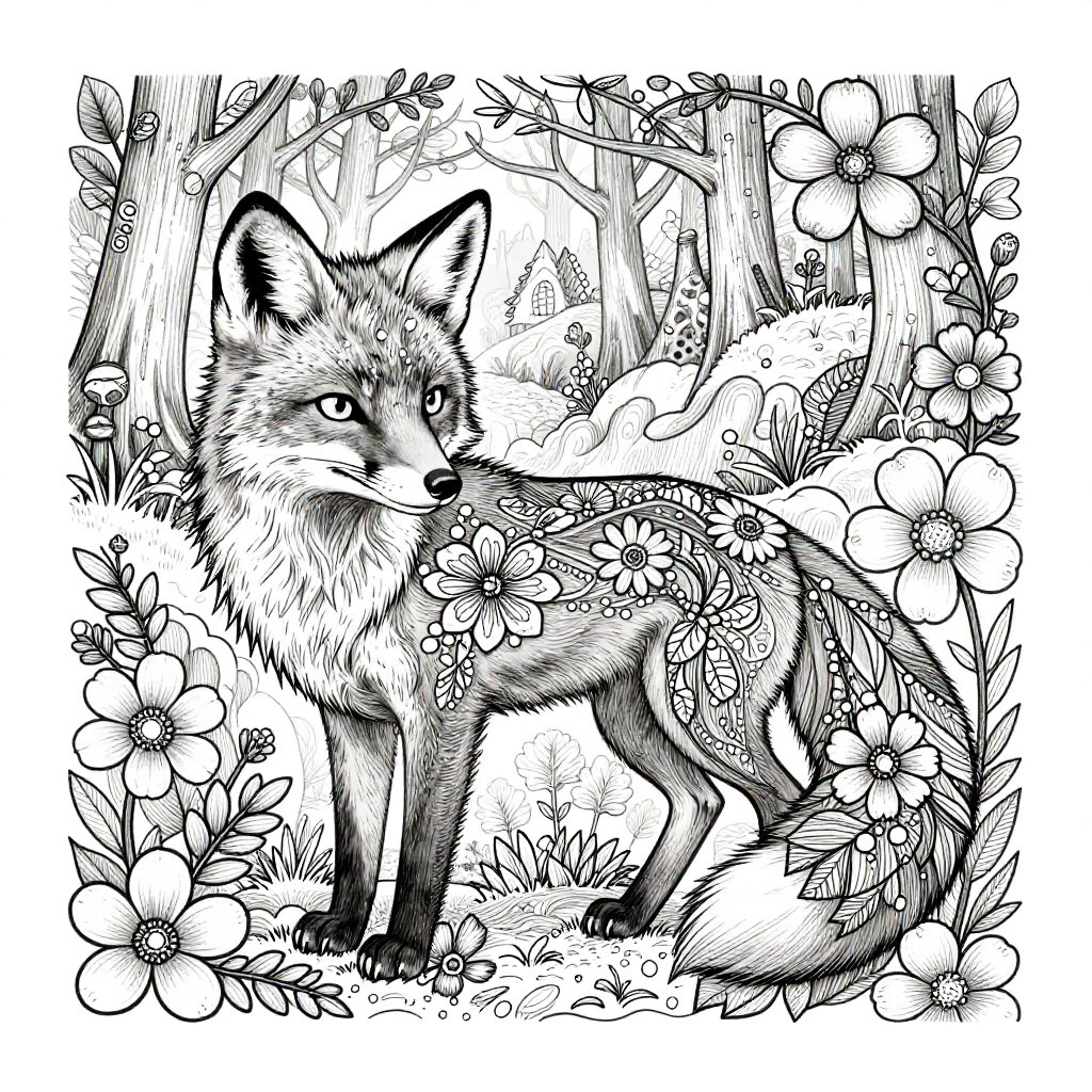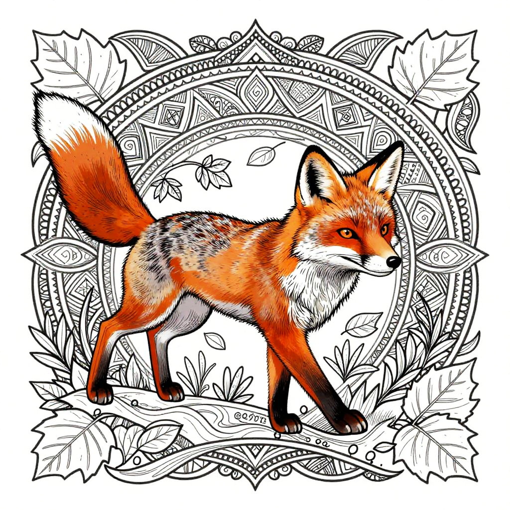 Serene Fox Mandala Coloring Page