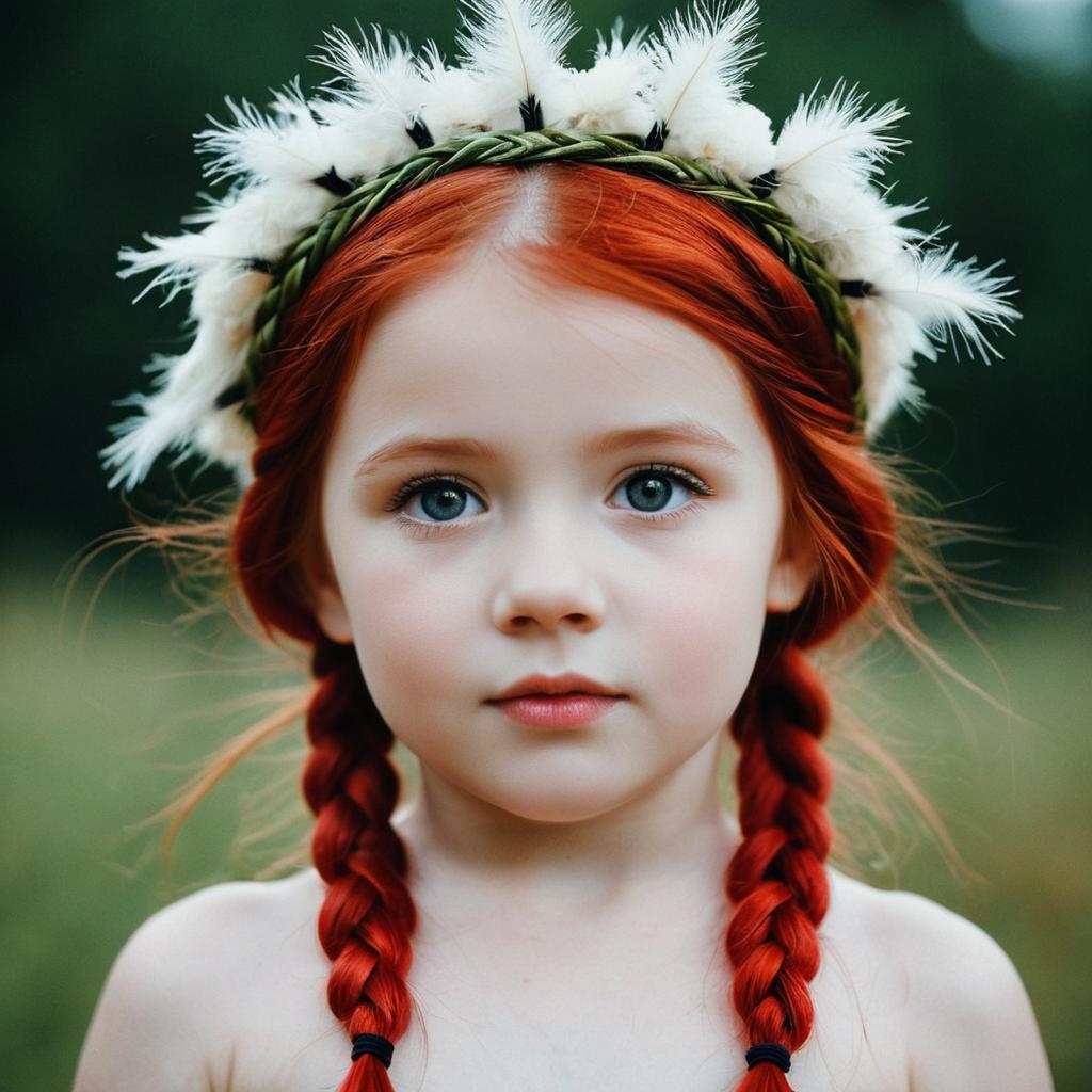 Little girl fancy dress,1girl, solo, long hair, flower, hair flower, hair ornament, brown hair, realistic, blue eyes, lips, dress, wavy hair, floral print, looking at viewer, curly hair, blurry