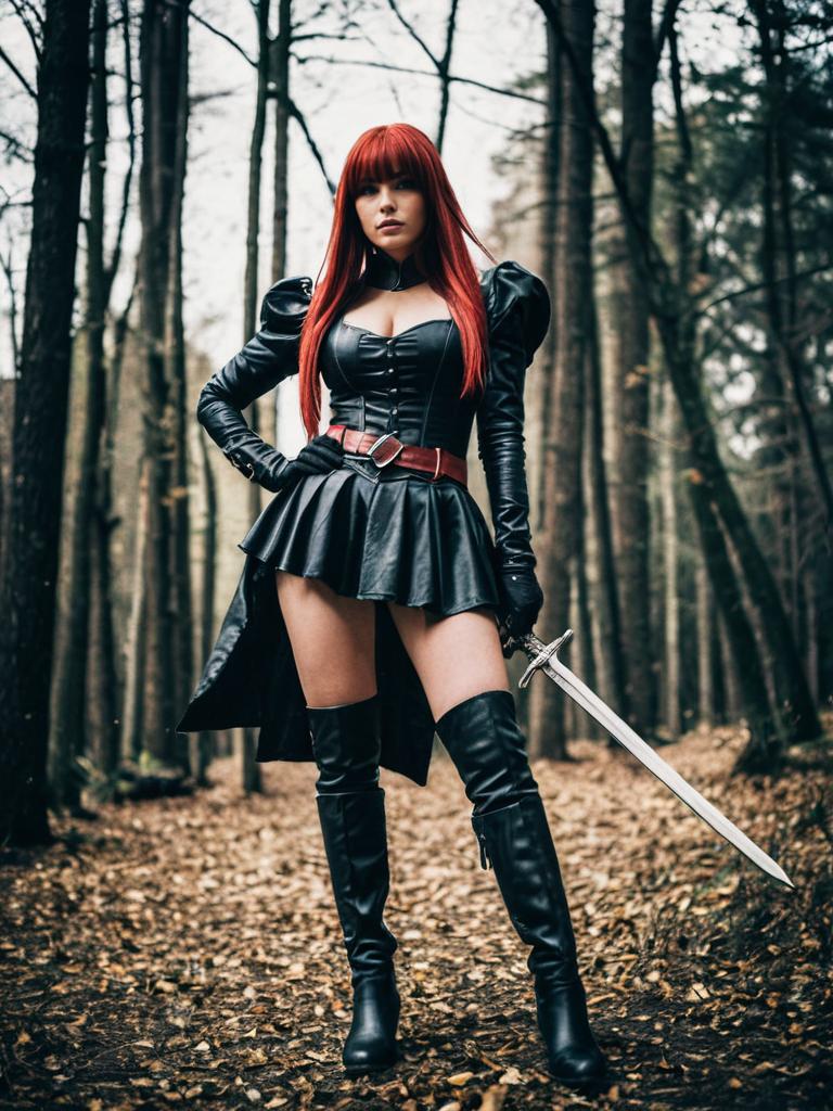 Woman in Thigh High Boots Outfit costume, cinematic realism, photorealistic cosplay photography