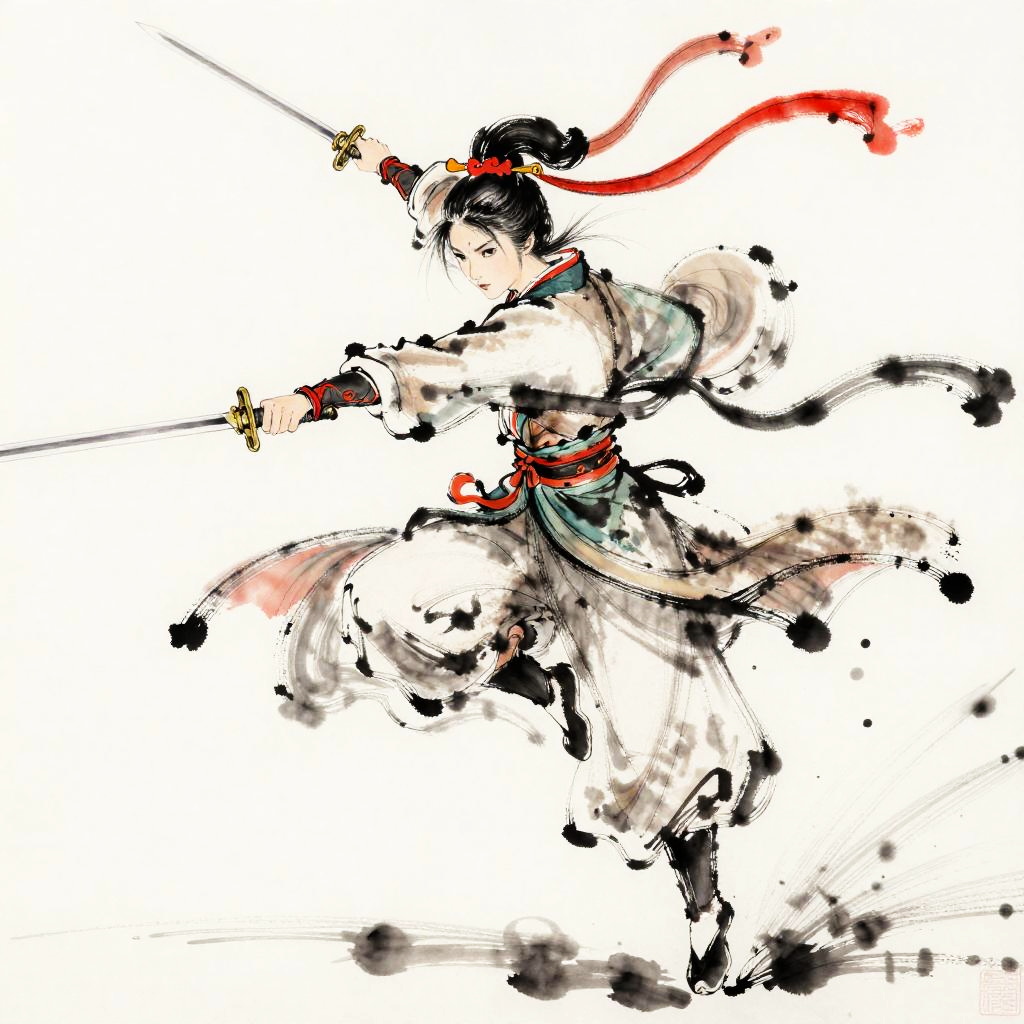 Dynamic Female Hero in Traditional Hanfu