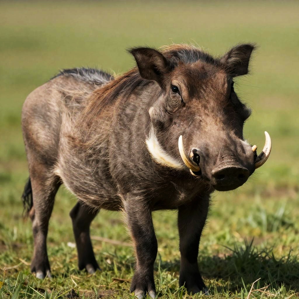 Wild Warthog in Grassy Field