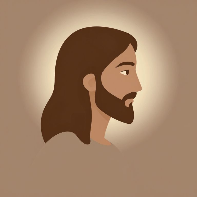 Minimalist side profile portrait of Jesus Christ, clean lines and gentle shading, focus on his calm and compassionate gaze, warm earth tones with a soft glow around the head symbolizing holiness, simple abstract background.
