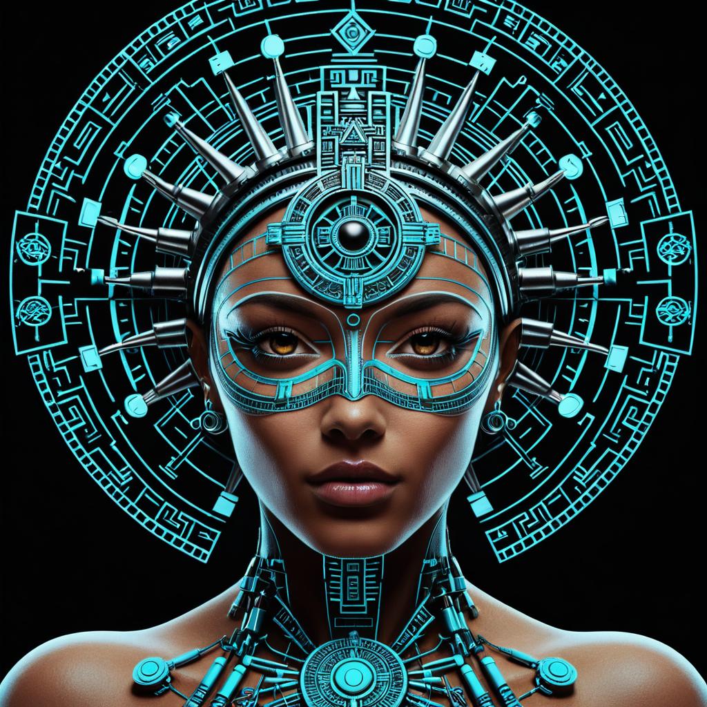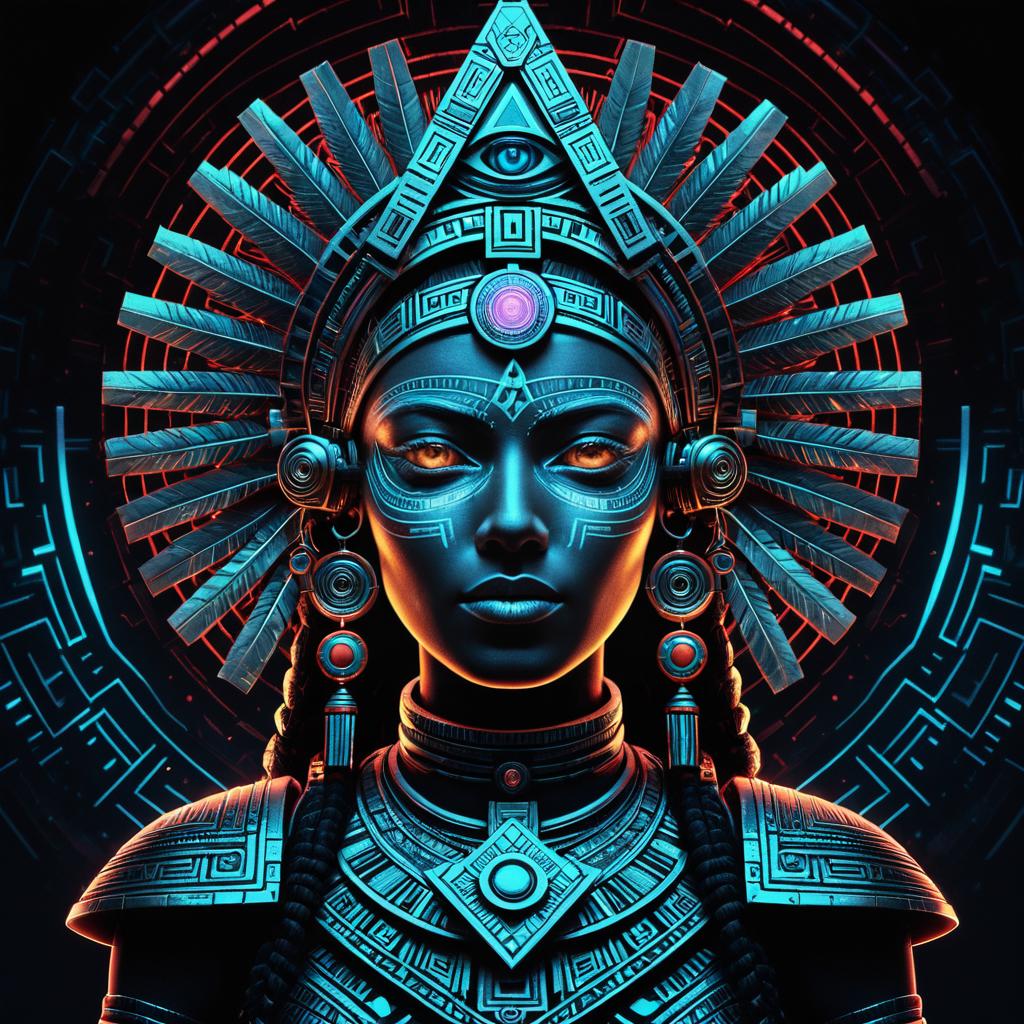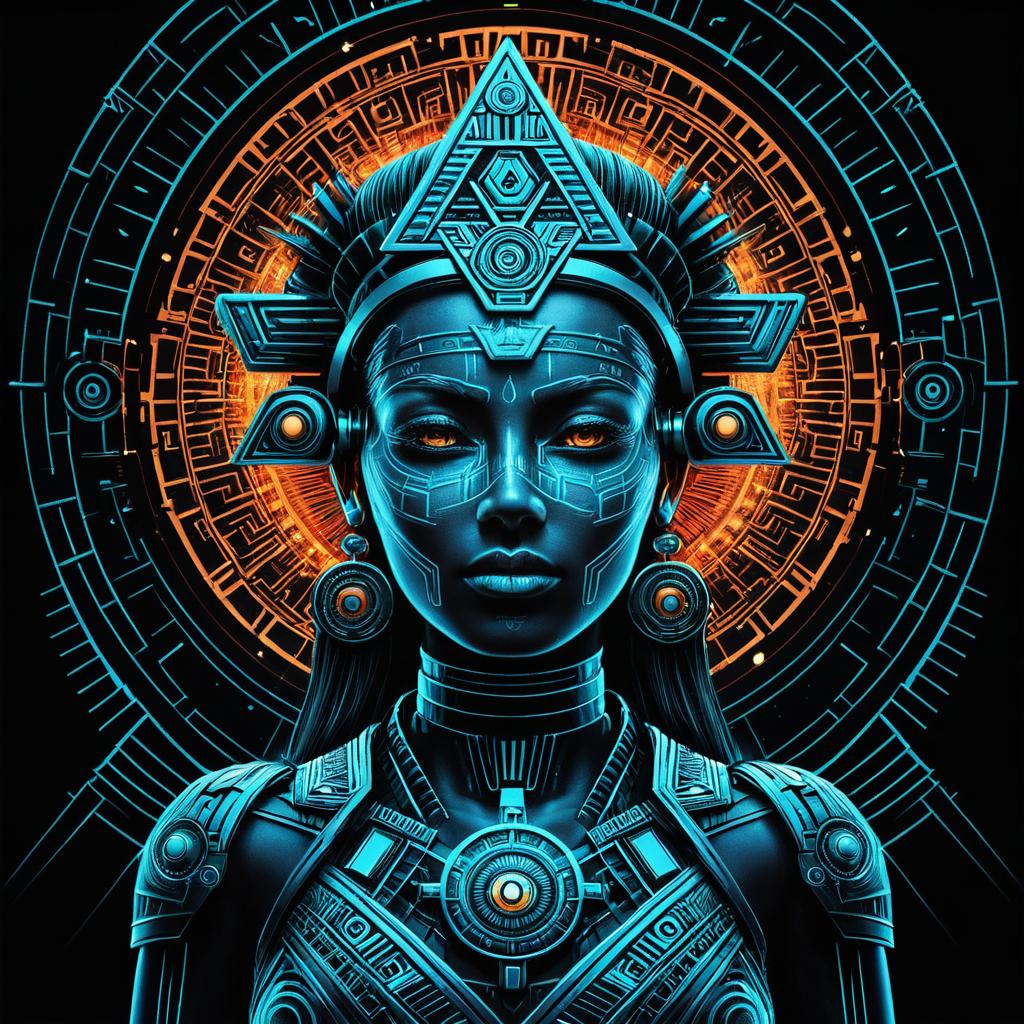 Cybernetic Mayan Female Robot with All-Seeing Eye