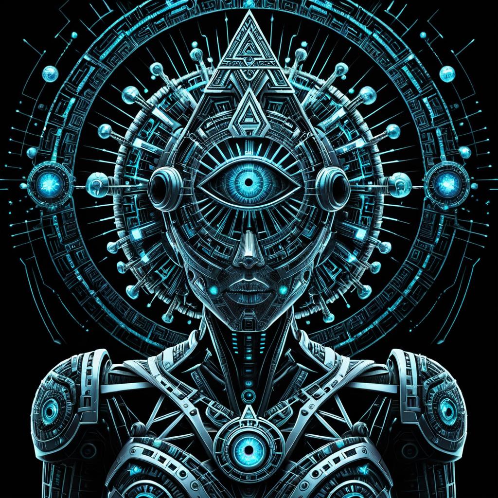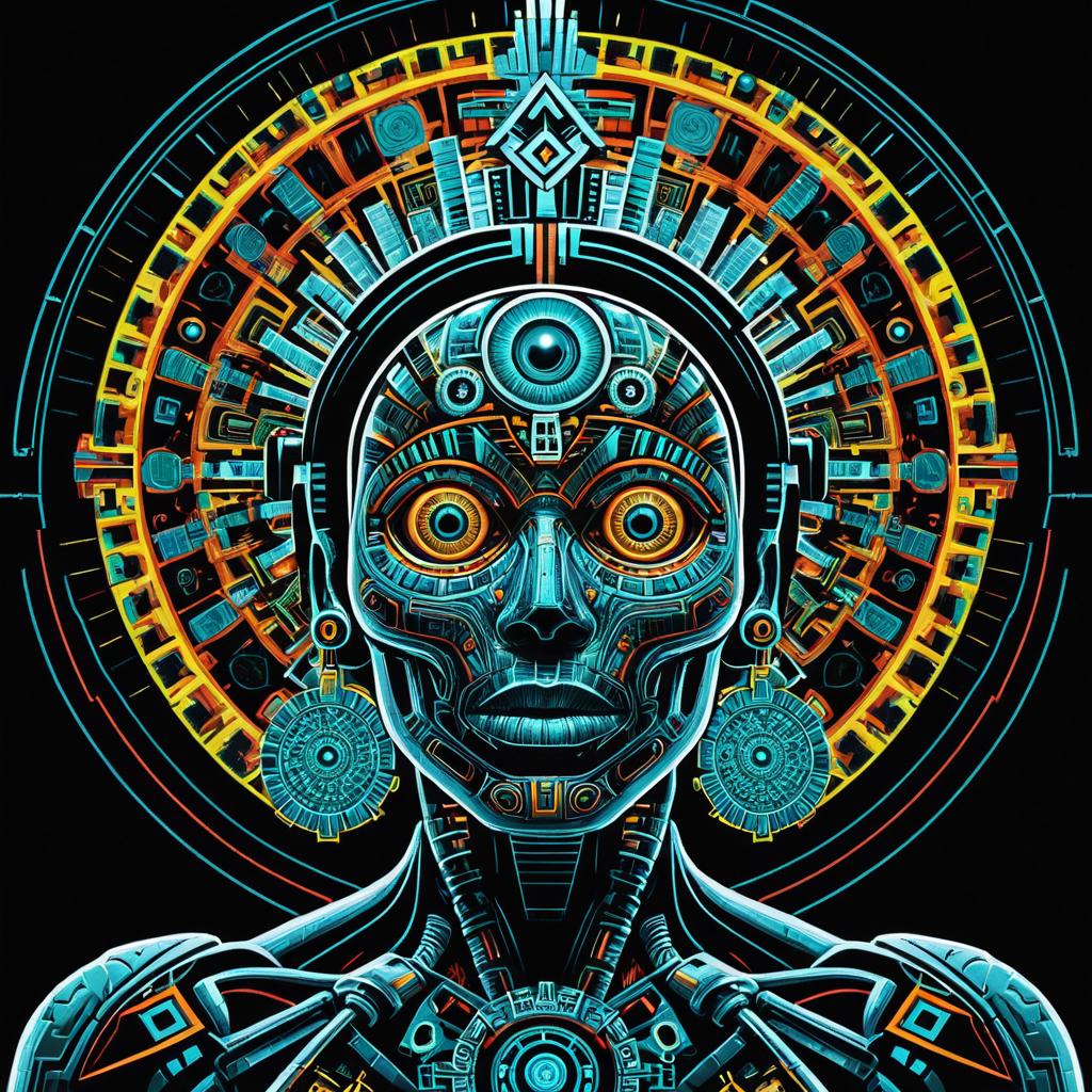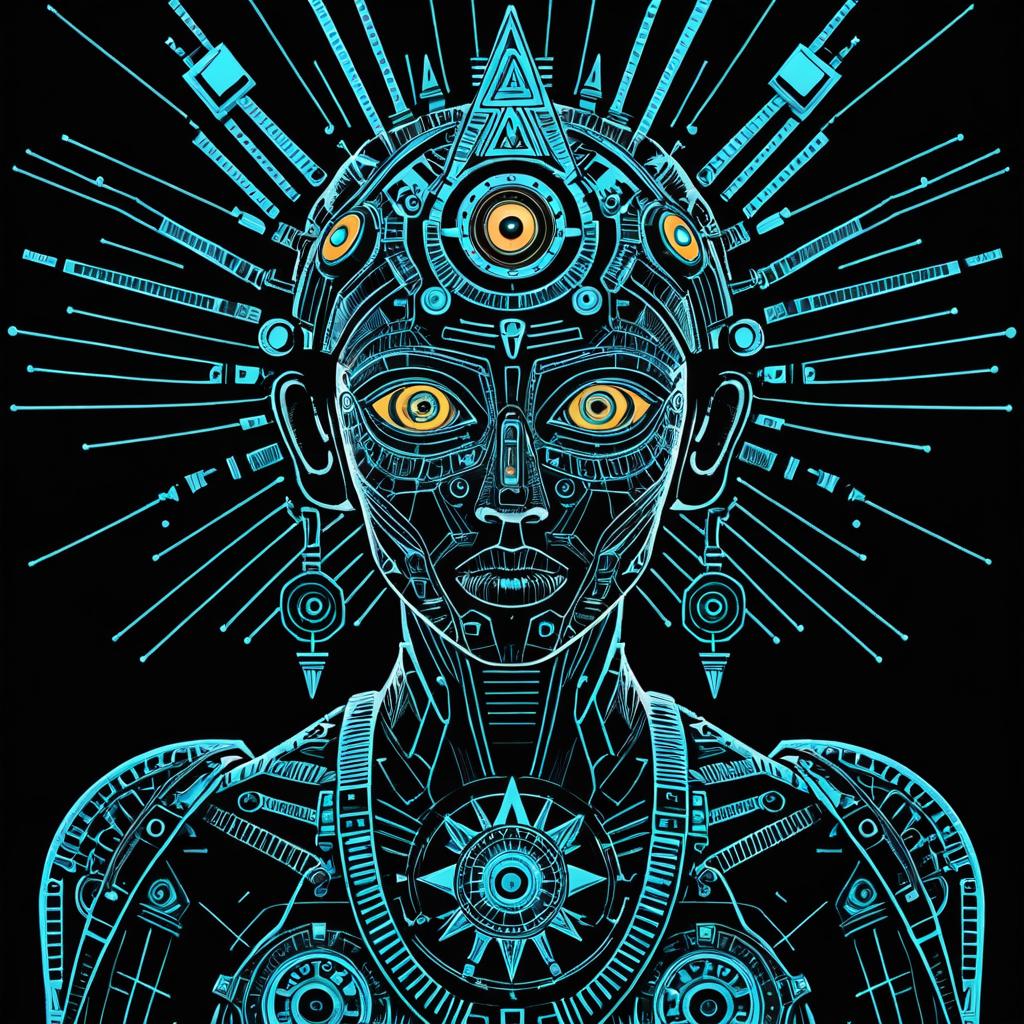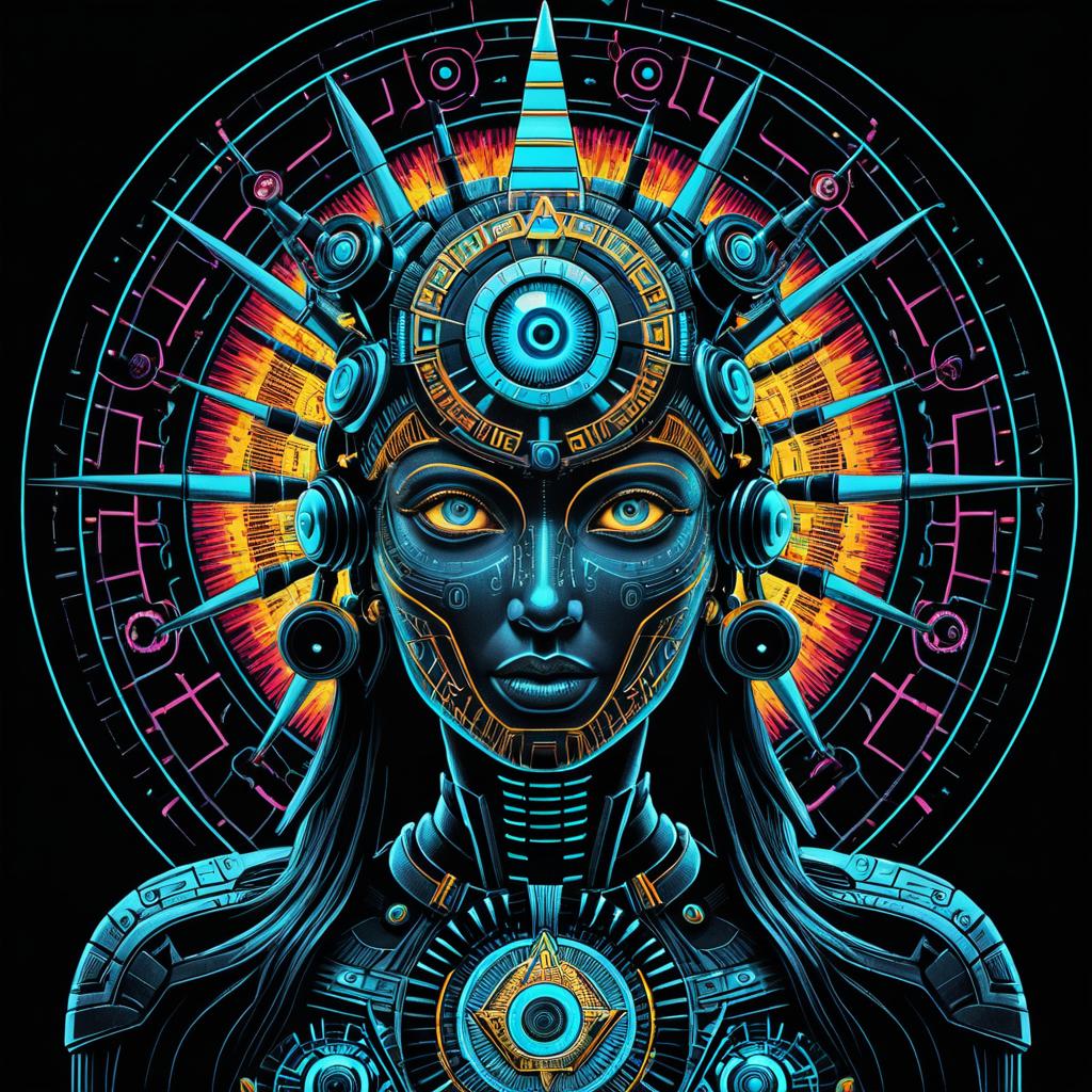 Cybernetic Mayan Female Robot with All-Seeing Eye