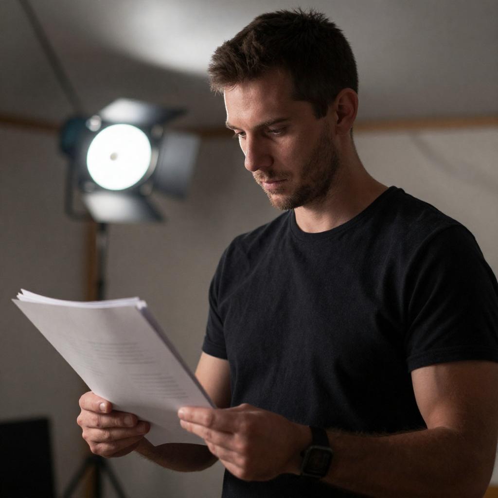 Man Reading Documents in Dramatic Light