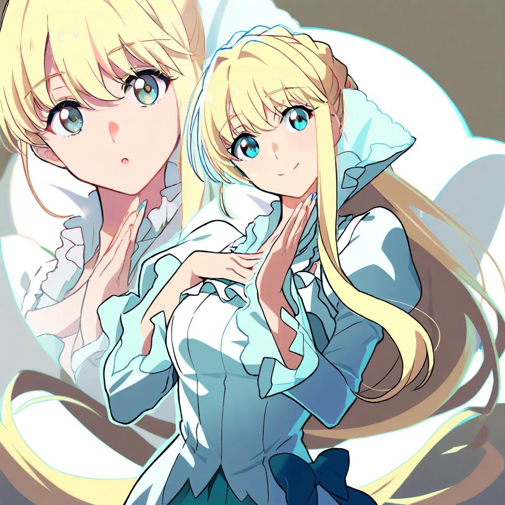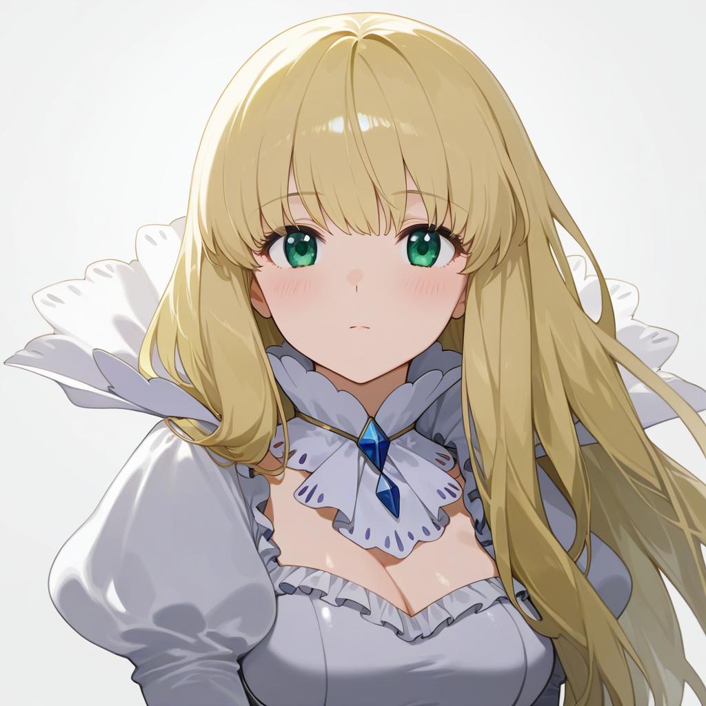 Asseylum vers allusia, aldnoah.zero, 1girl, green eyes, blonde hair, long hair, by artist nai ga, animagine