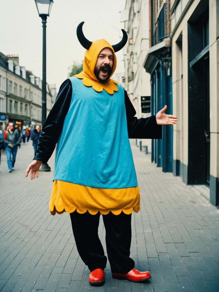 Person in Funny Fancy Dress Outfit, full-body oversized costume photo