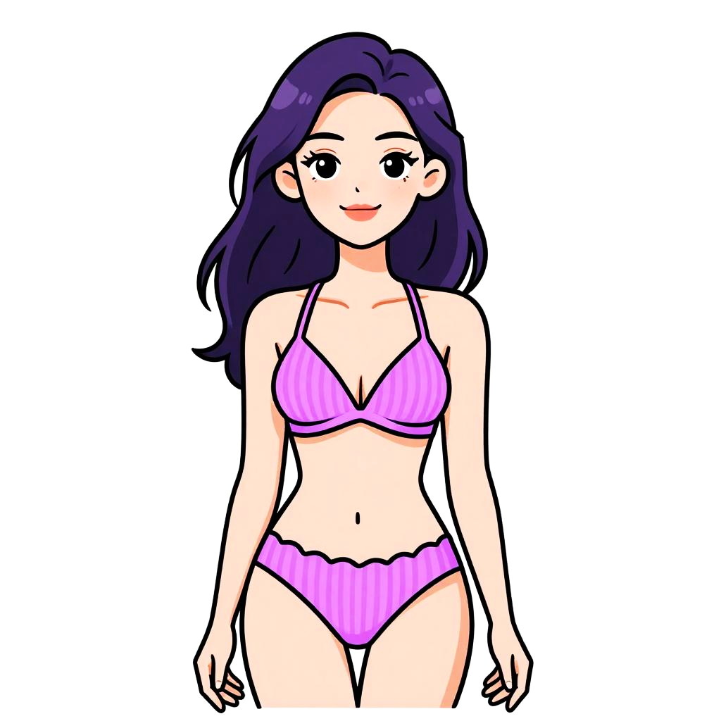 Woman with pretty face and pretty hair. Woman, lingerie style, black lace triangle bralette, sheer mesh panels, matching strappy bikini cut panties with lace and sheer paneling, indoor plain background. --sref 1467