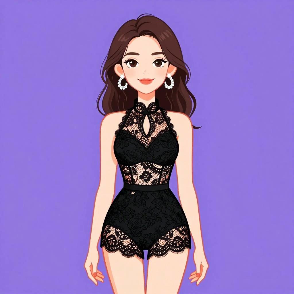 Elegant Woman in Black Lace Lingerie