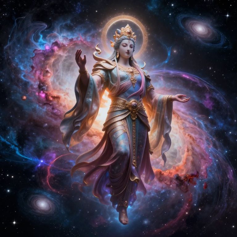 Lathandar Goddess with Staff in Mystical Sunrise