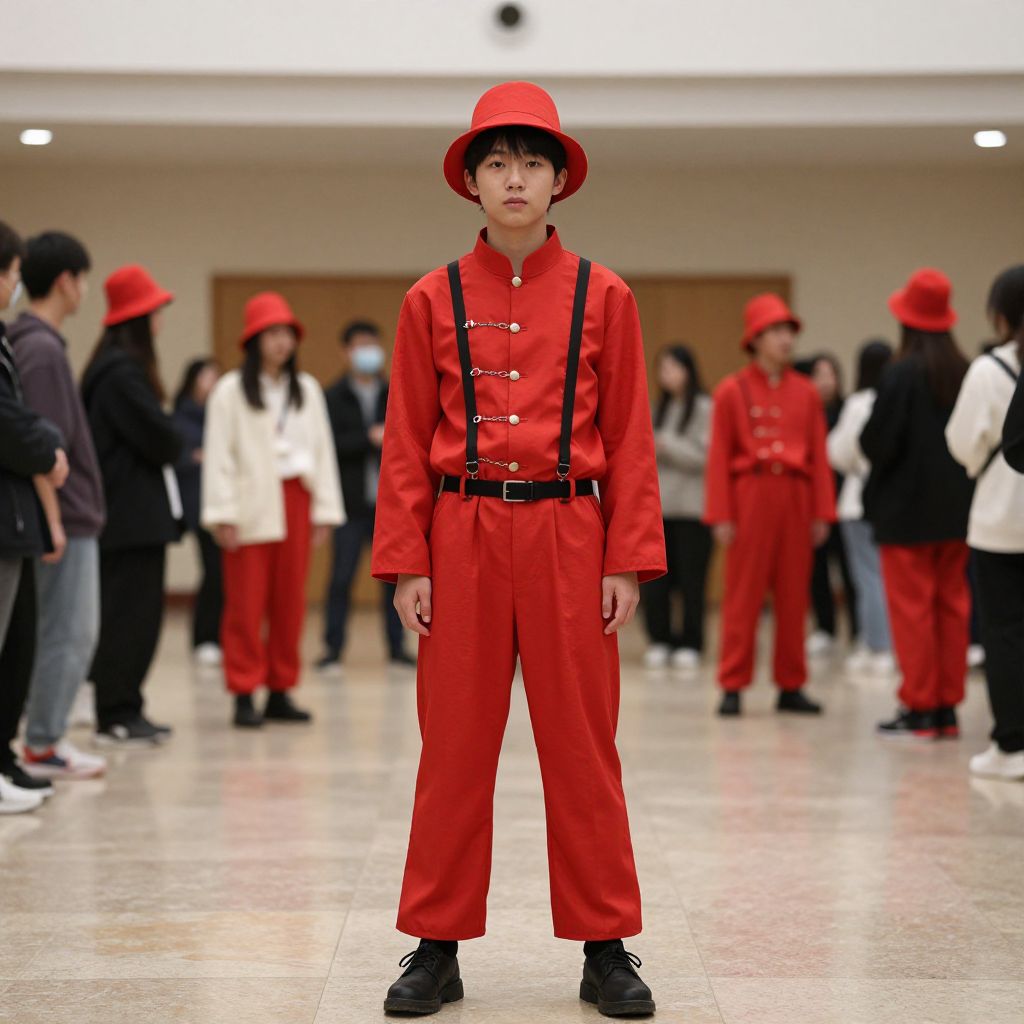 Red Outfit Costume in Hall
