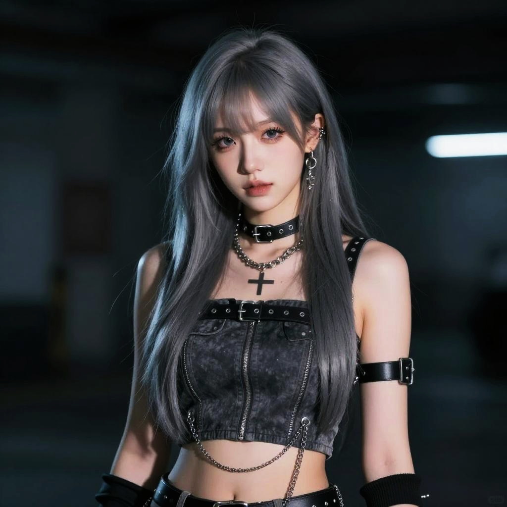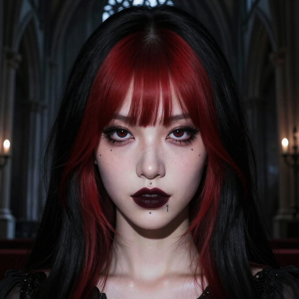 Gothic Beauty with Flaming Red Bangs