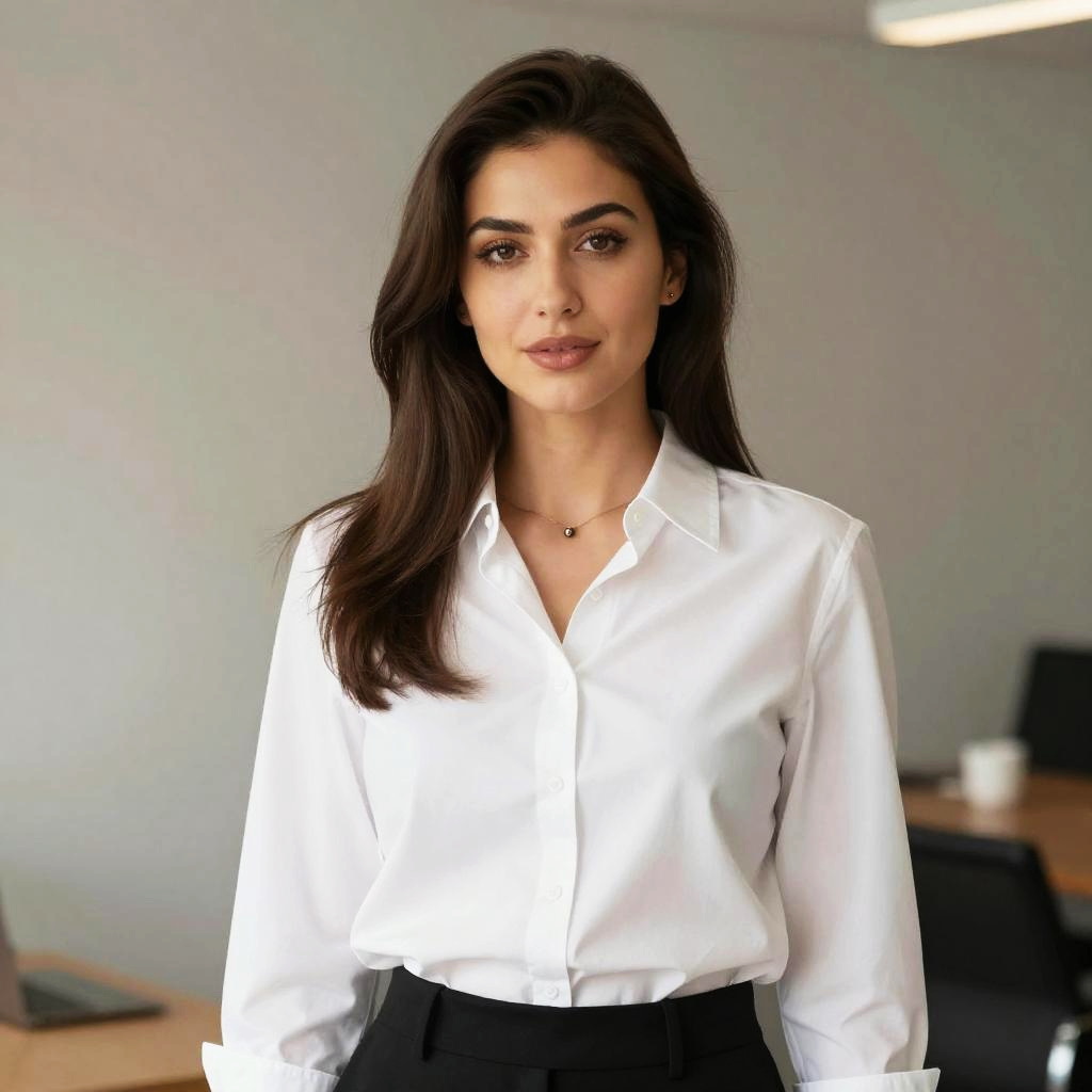 Professional Woman in White Office Blouse
