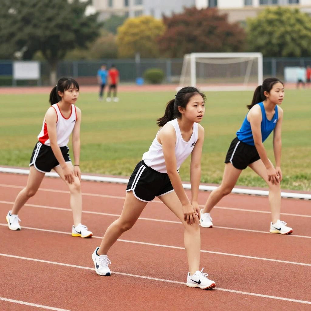 Energetic Track Girls Sprinting Outdoors