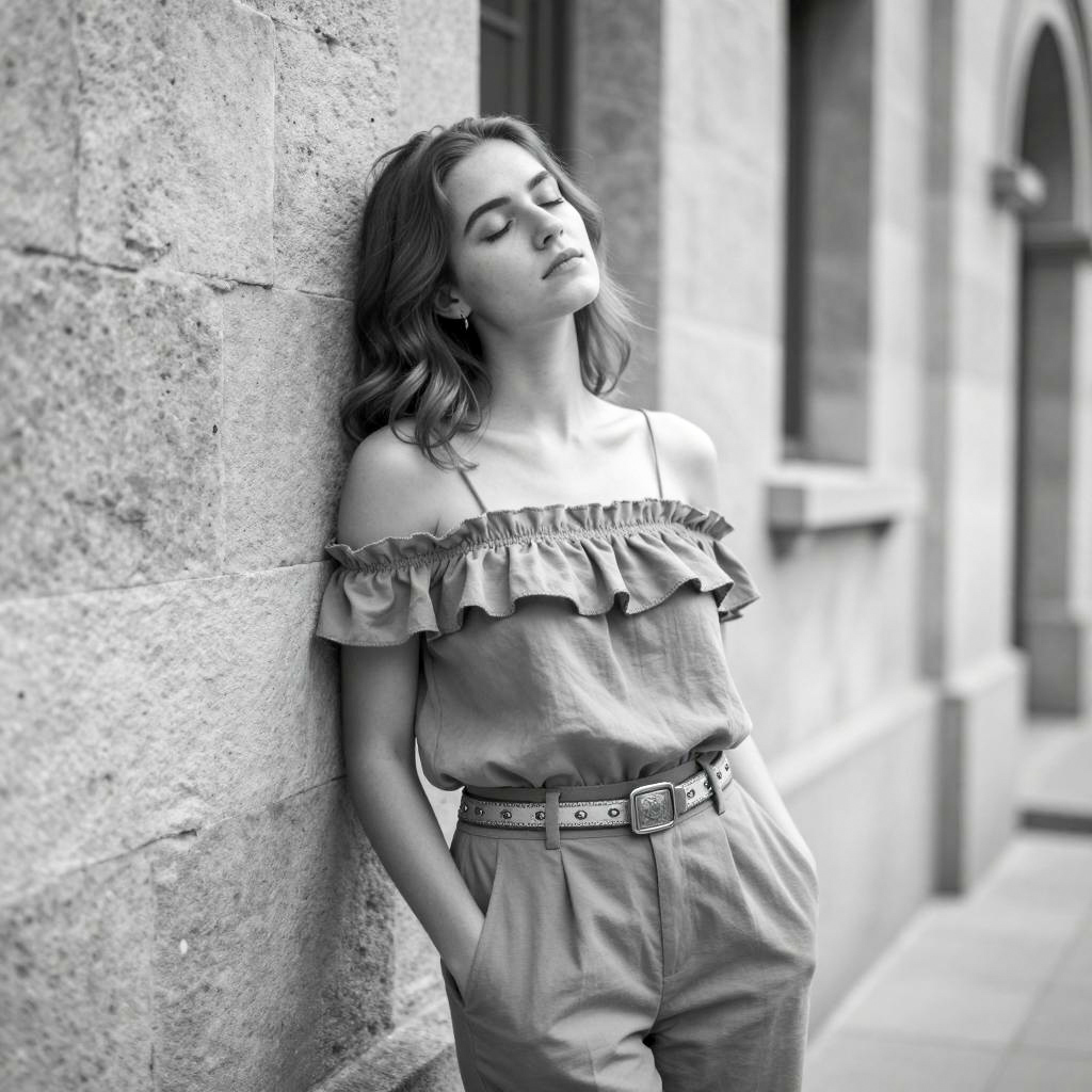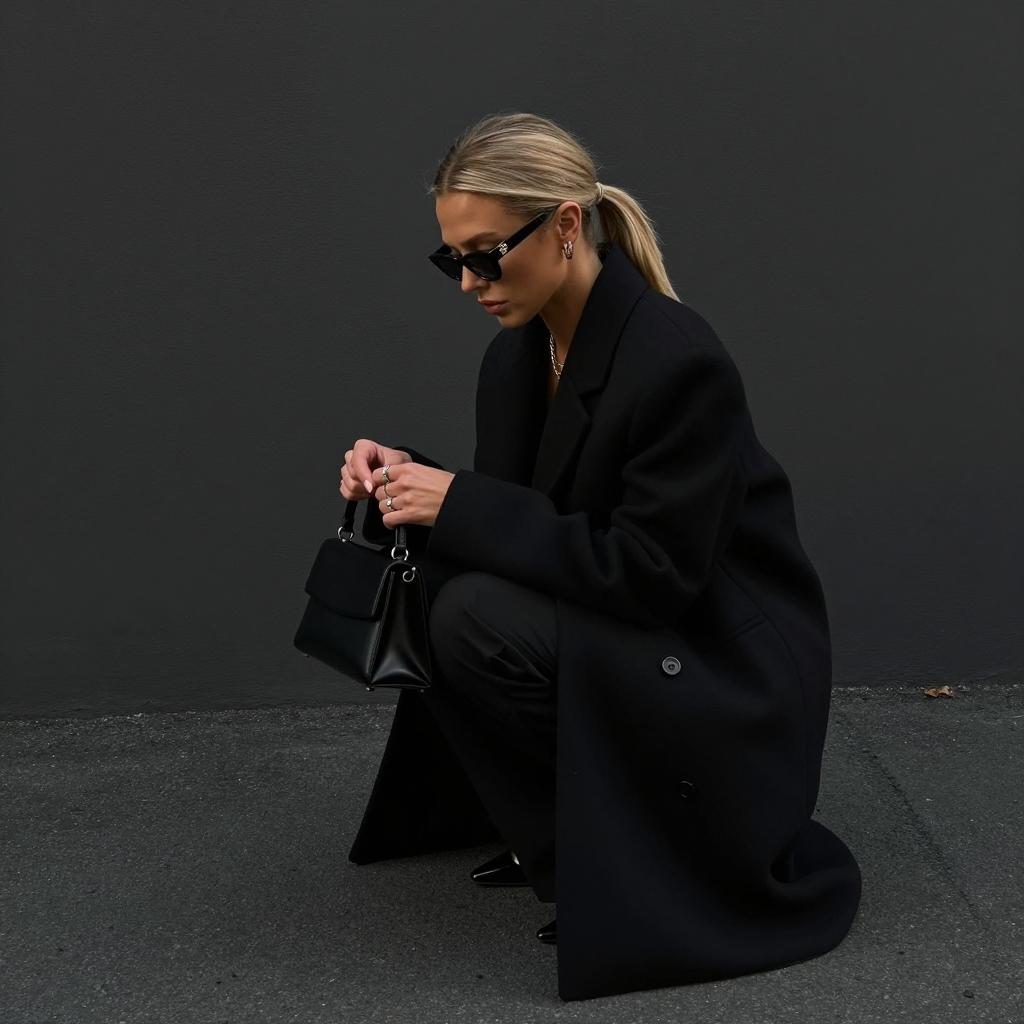 Urban Elegance: Blonde Woman in Black