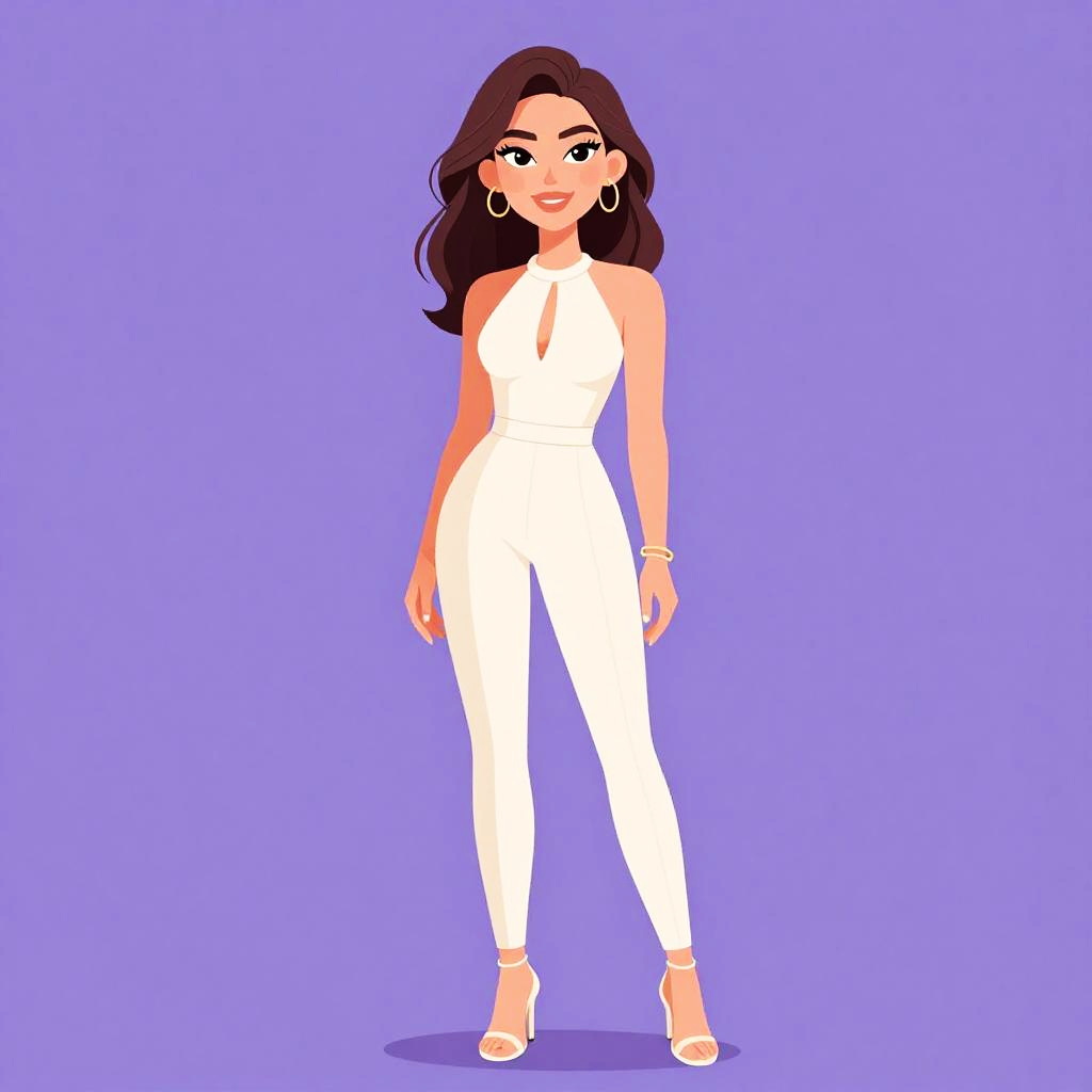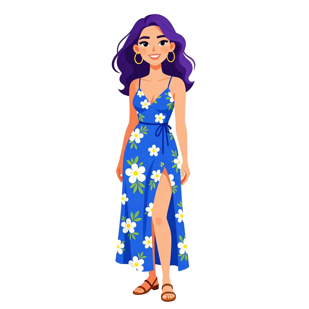 Woman with pretty face and pretty hair. Woman, boho chic, maxi dress in a small floral print, short flutter sleeves, V-neckline, fitted bodice, front slit on the skirt, black ankle boots, layered necklaces, studio background with a gray gradient --sref 1467