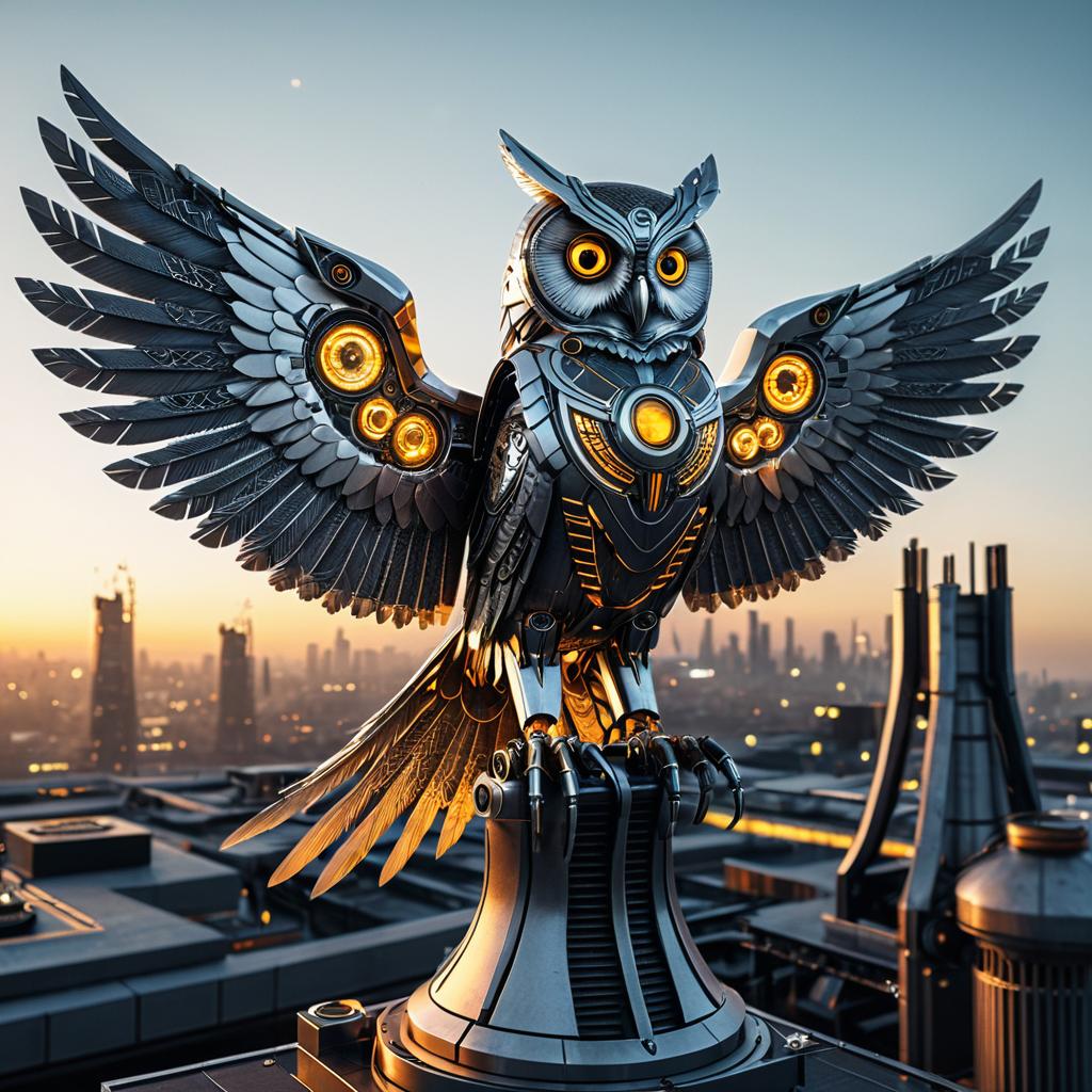 Futuristic Robotic Owl on Rooftop