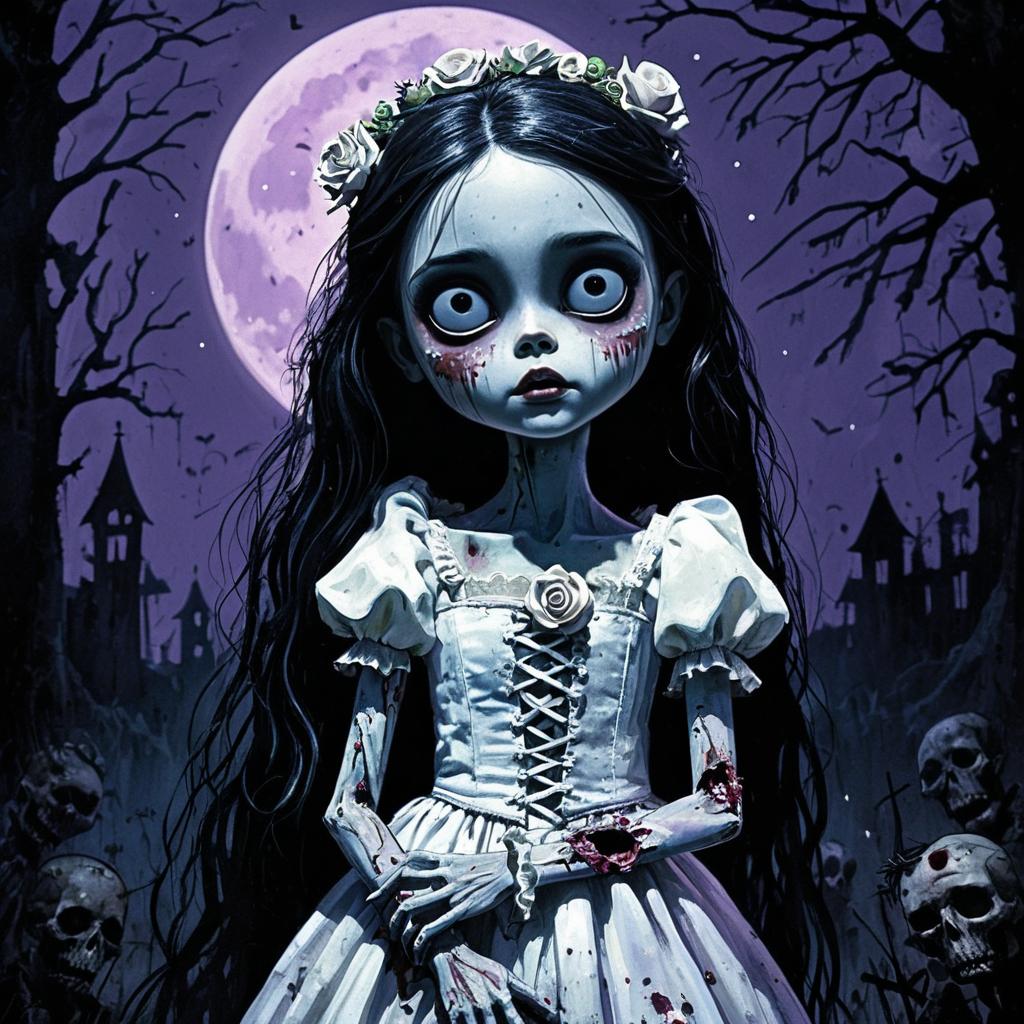 A cartoon picture of a witch in a cauldron, corpse bride art style, with bubbling potions and floating eyeballs, lit by ominous purple light, by Arthur Rackham, featured on Fine Art America, whimsical yet dark, wrapped arms, unusually unique beauty, gory