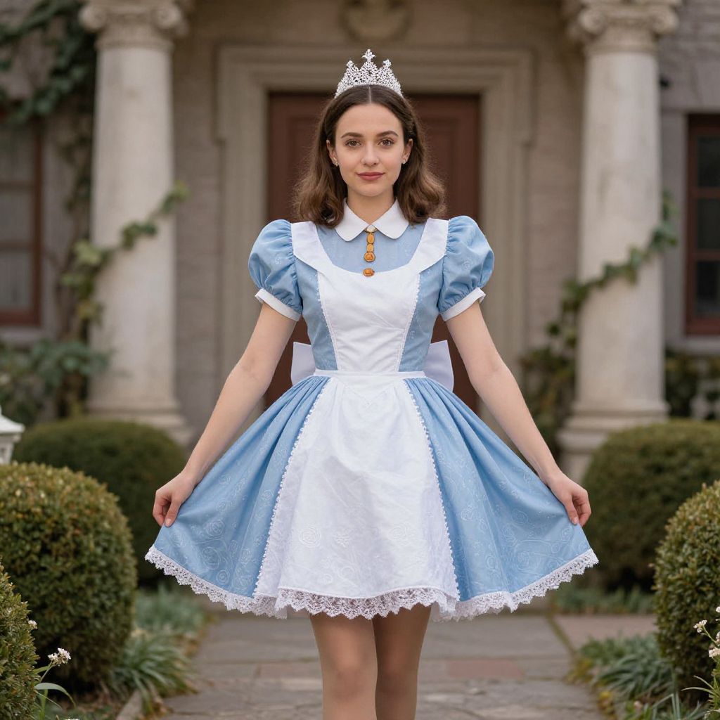 Queen alice wonderland, 1girl, solo, dress, pantyhose, brown hair, crown, tiara, puffy sleeves