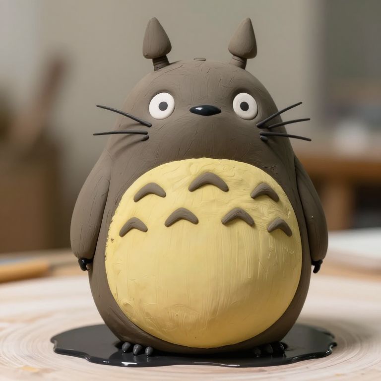 Ink Viscosity totoro sculpted in clay, sculpture, wet clay, anime style, cartoon style, 8K, Hyper real,